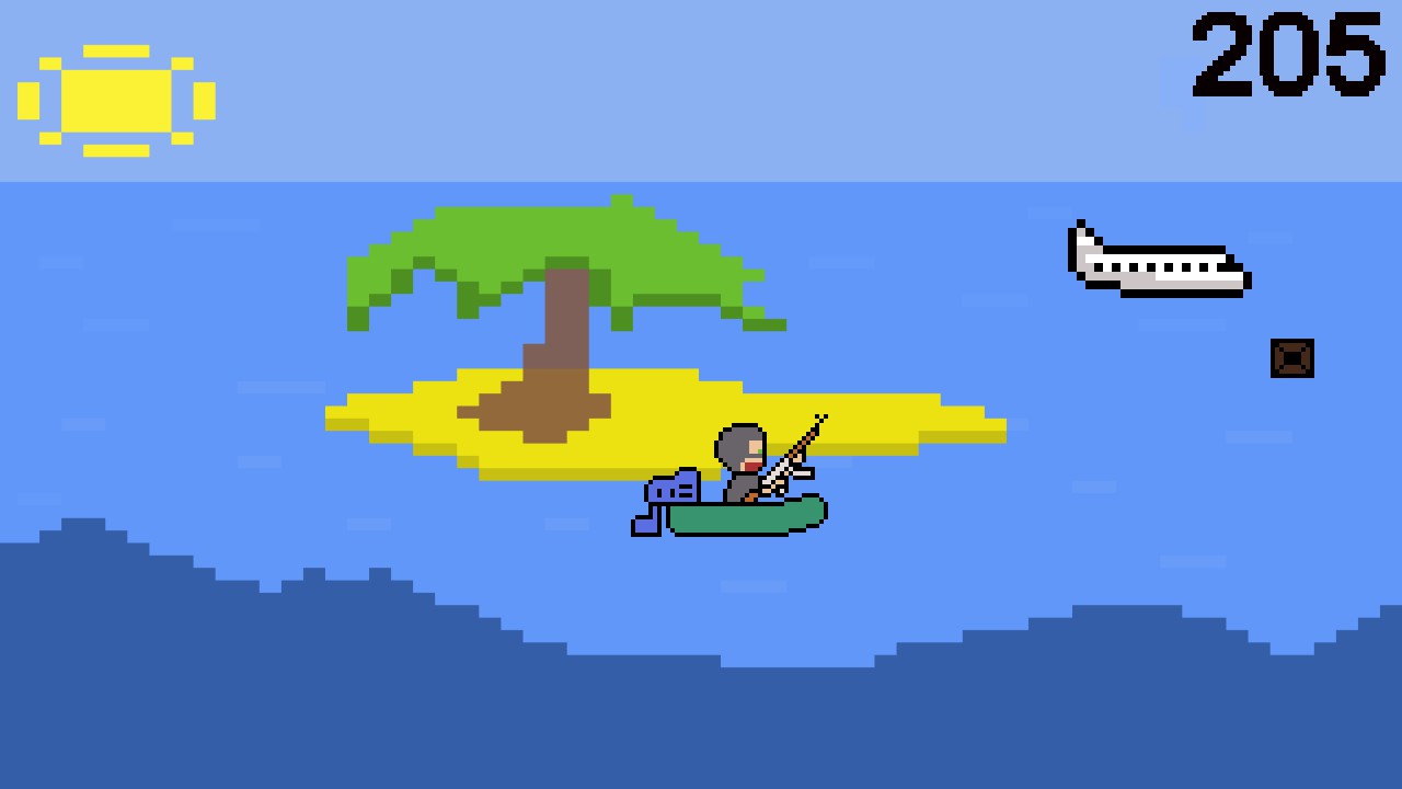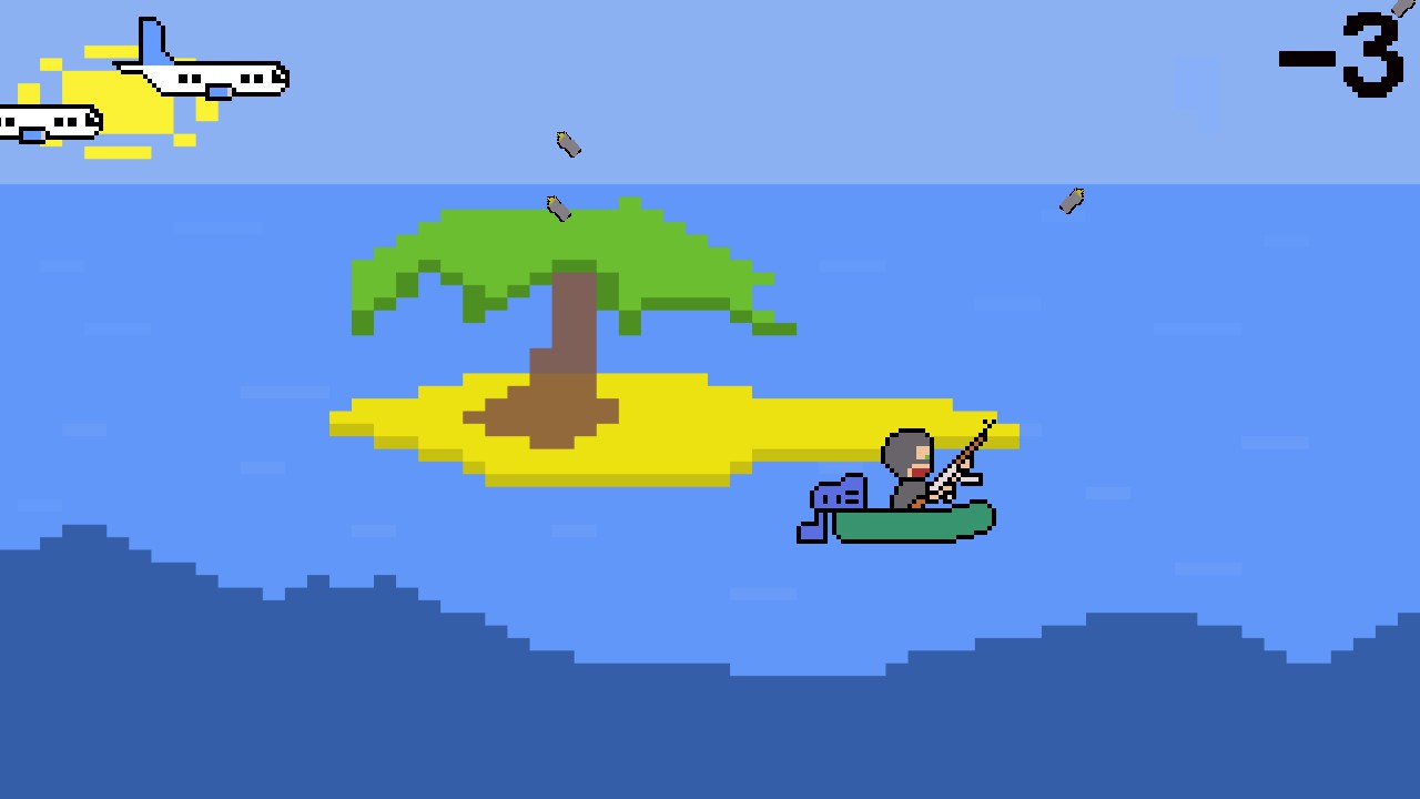 You are playing for an African pirate and you need to destroy as many planes as possible off the coast of Africa, and also collect humanitarian cargo, and dodge of rockets