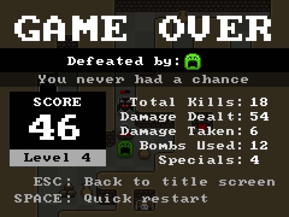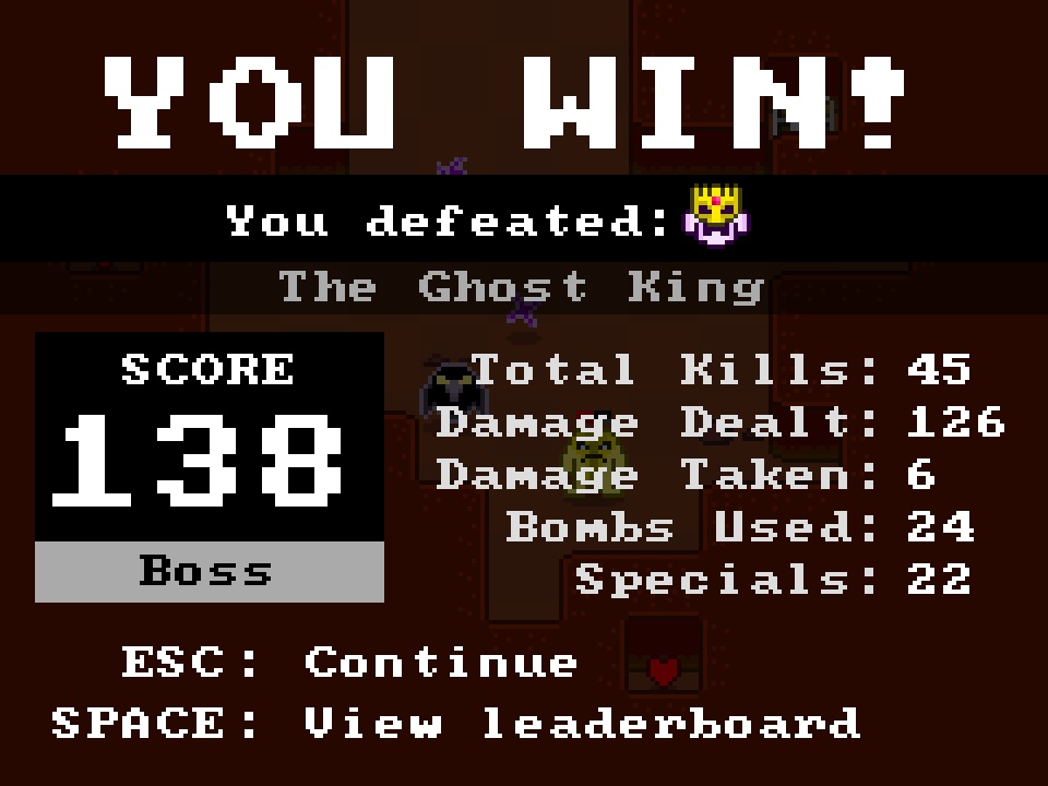 Realm of the Ghost King is a quick-play roguelike where you must battle your way through eight randomly generated dungeons to defeat the Ghost King and become the new king of the realm.