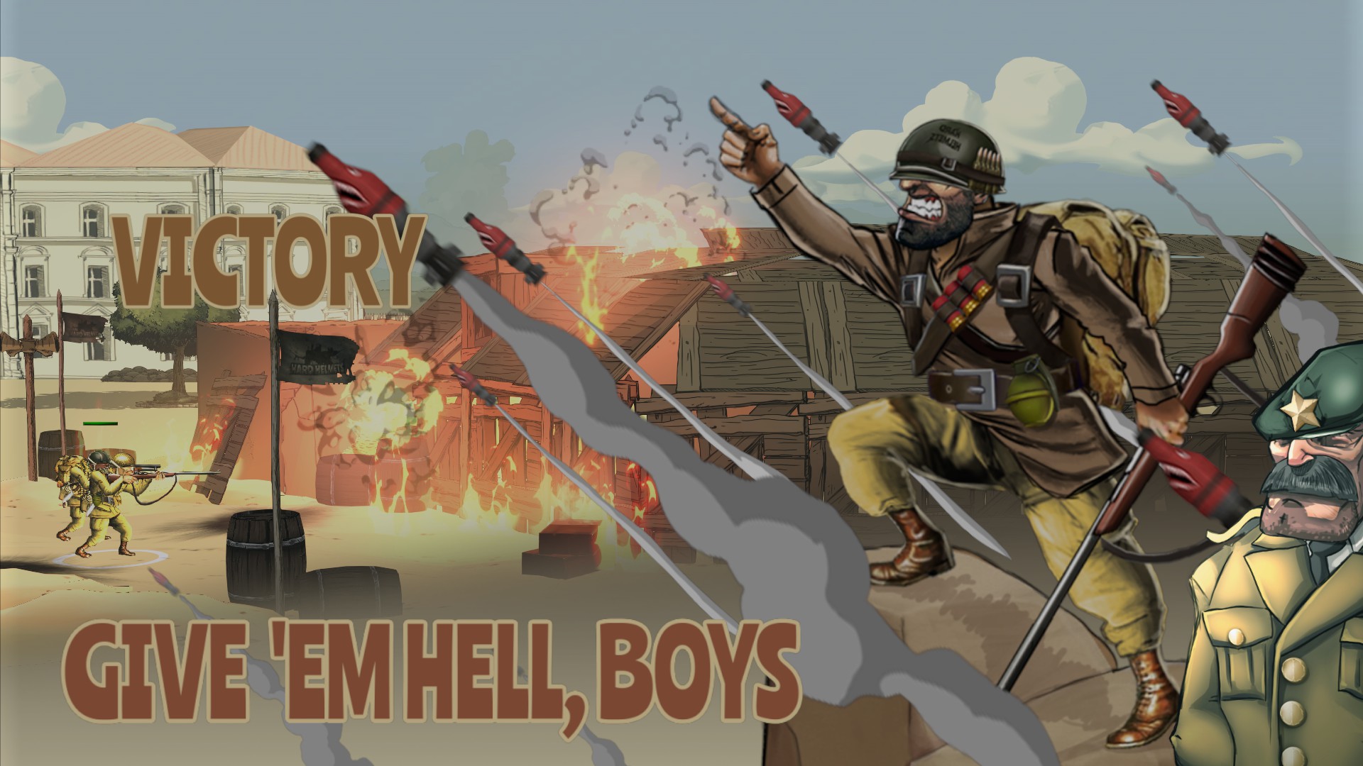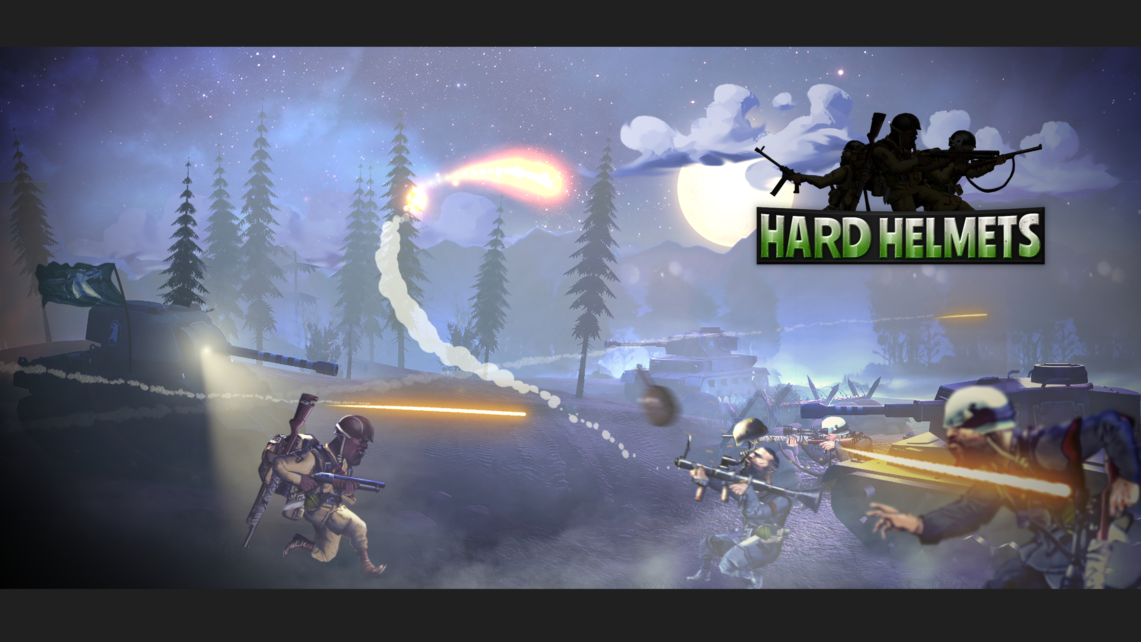 Hard Helmets is a 2D real time strategy game where you can face other players in amazing battles through the use of world war II inspired characters that will reinforce your command with attack and defense strategies by using war bonds during every battle.
