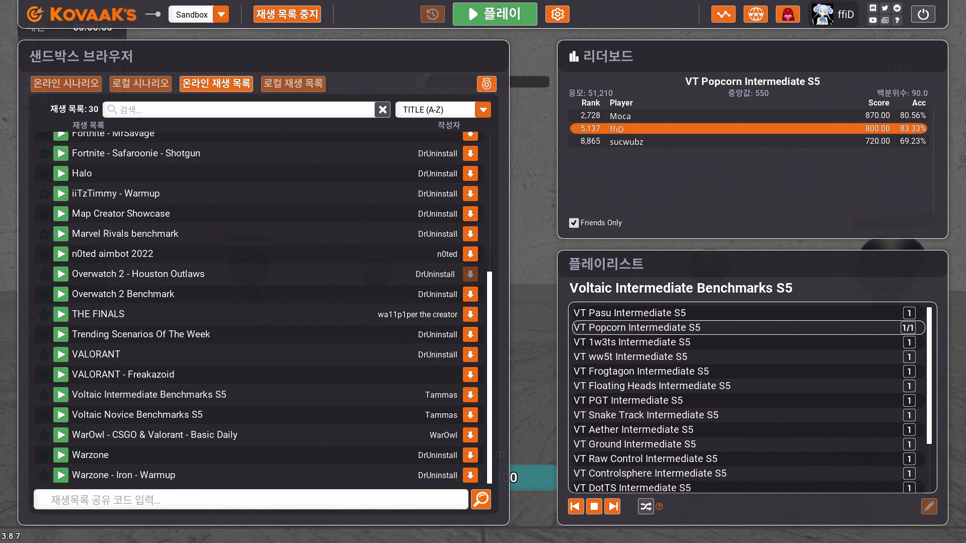 Thanks https://kovaaks.com/kovaaks/profile?username=wa11p1per and https://kovaaks.com/kovaaks/profile?username=AOtalt3 for the help!