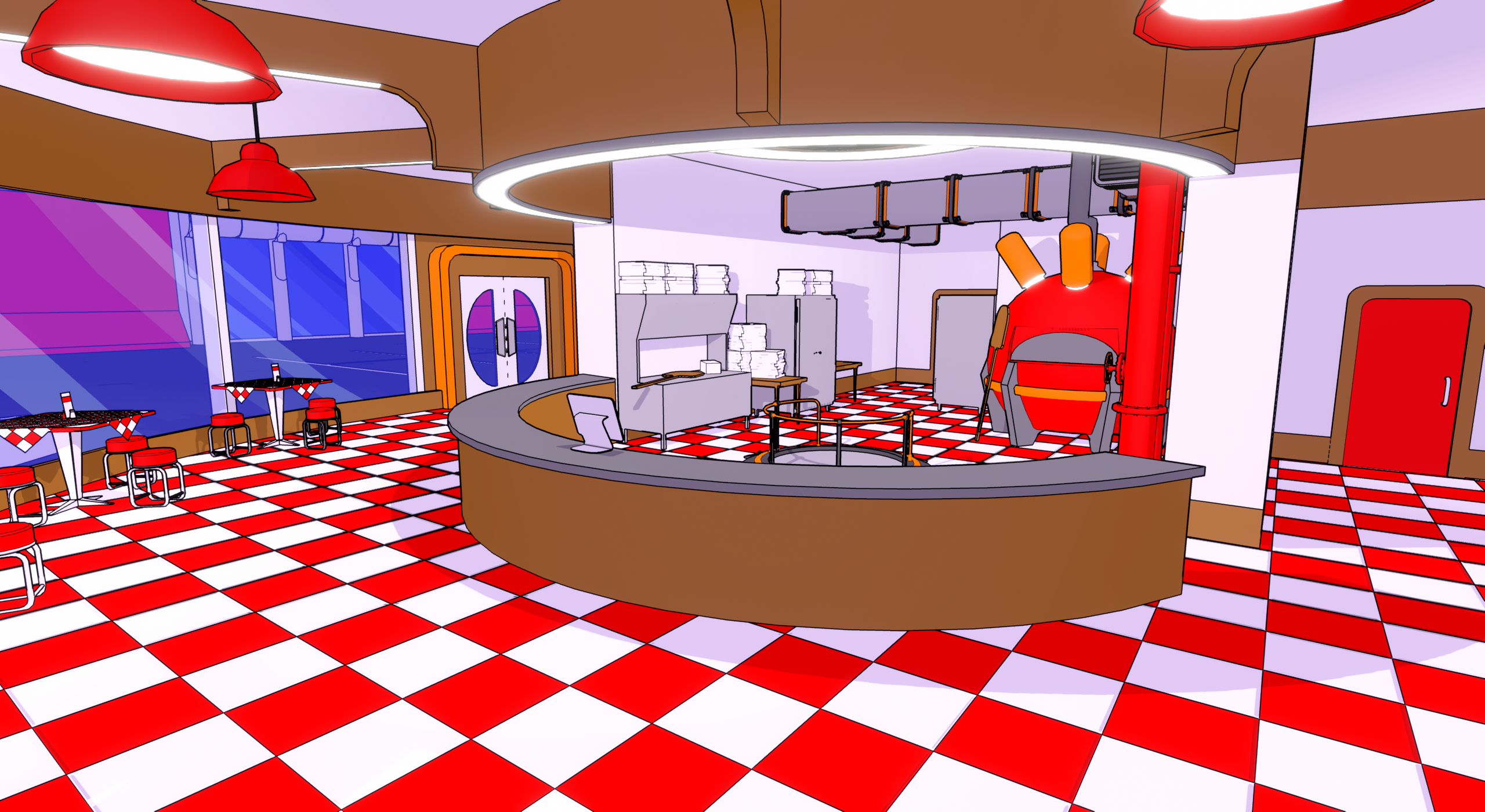 Here's a preview of the interior of the local pizza place, used for a very special side mission.