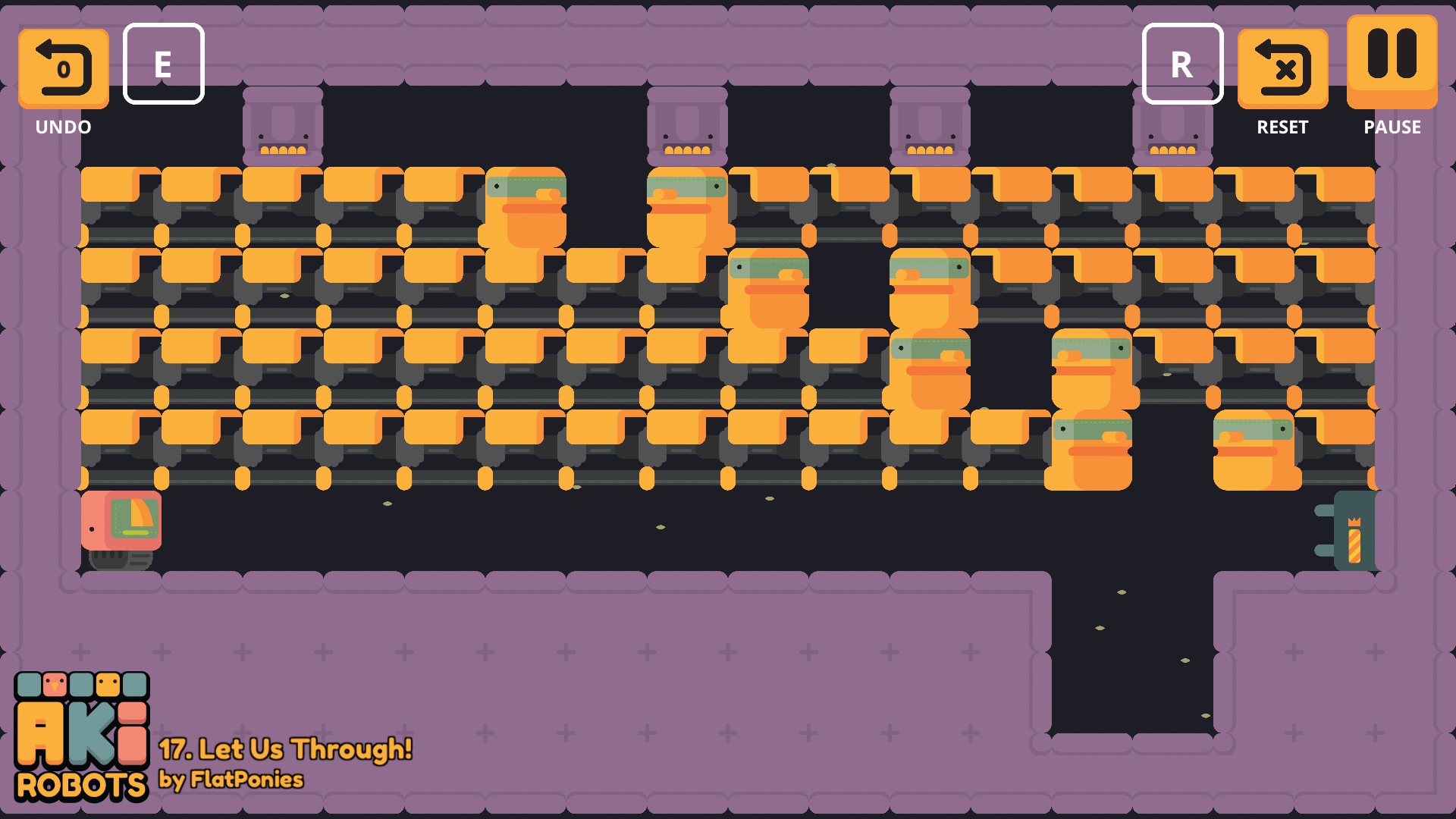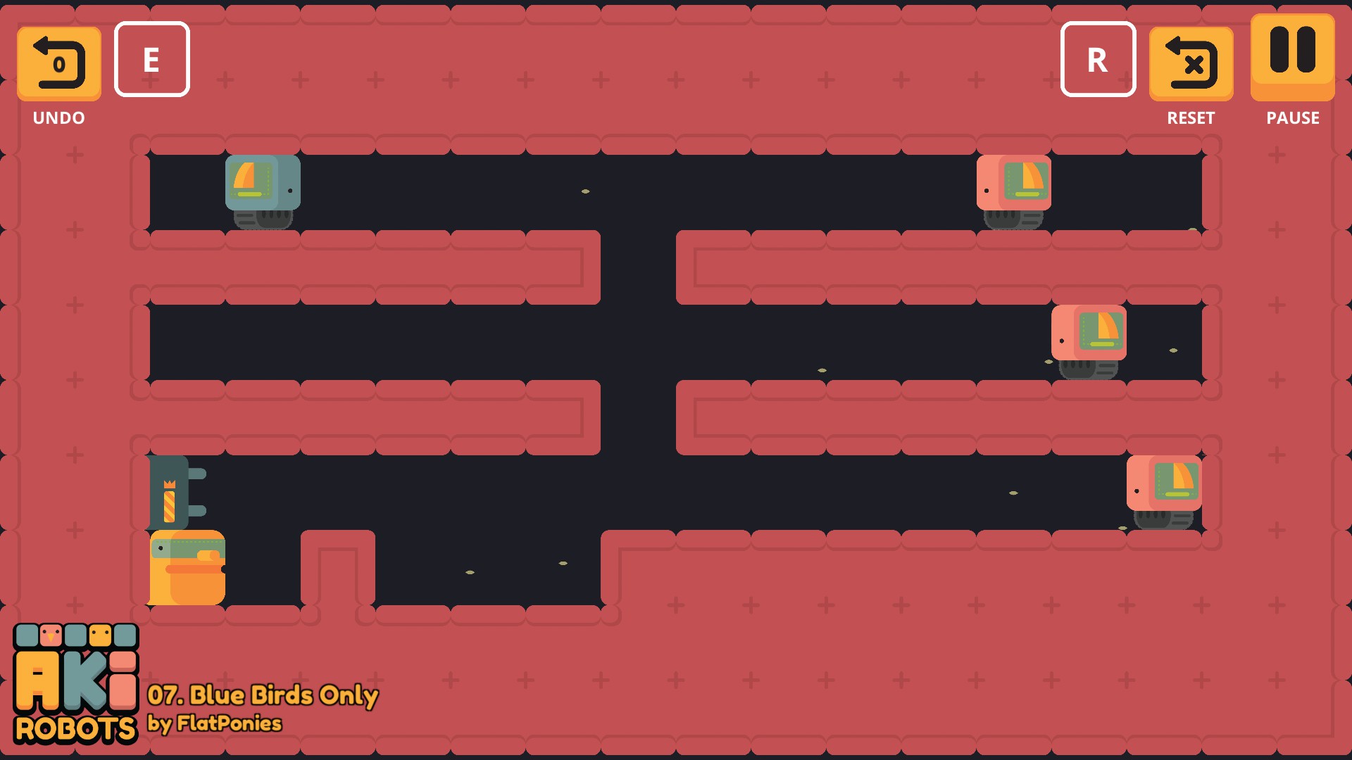 #AkiRobots is a 2D puzzle platformer where you control multiple characters simultaneously. The game includes 100 levels and players can modify existing levels, create new levels to share and import other players’ levels via the level editing and sharing system.