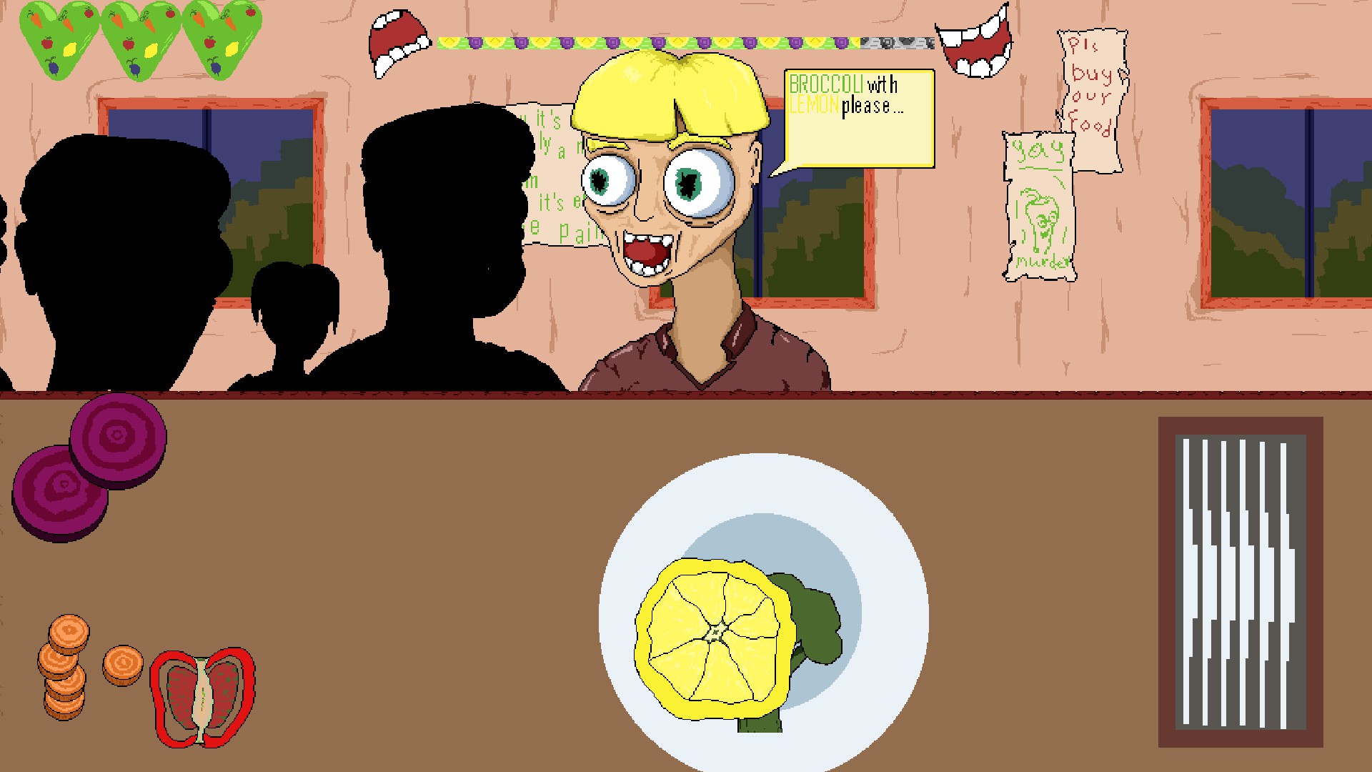 Greenspawn Restaurant is a unique combination of a cooking game and a shooter. Take control of an odd restaurant joint and cook your way through the ridiculous and unforgettable adventure to glory and success!