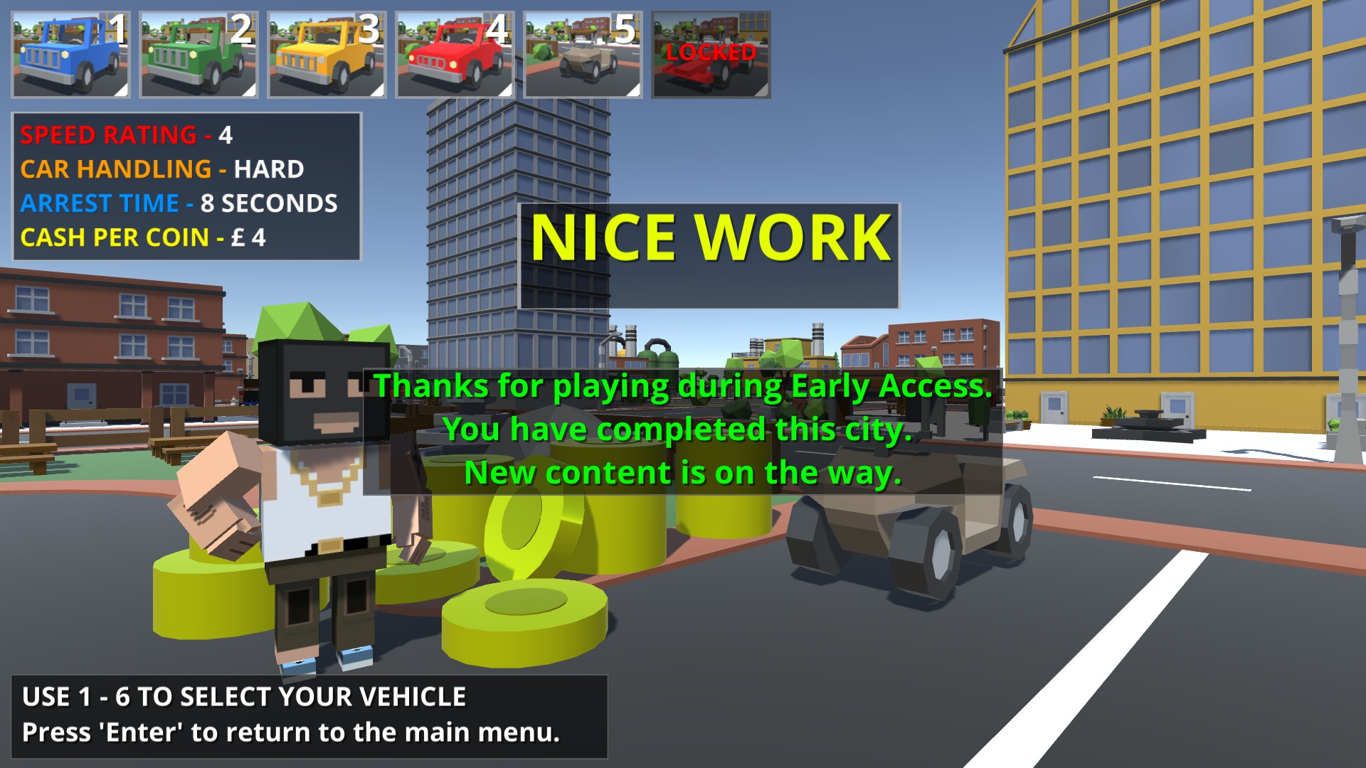 DRIVE a variety of vehicles, SWITCH between cameras and EVADE the police while you collect cash throughout the city.