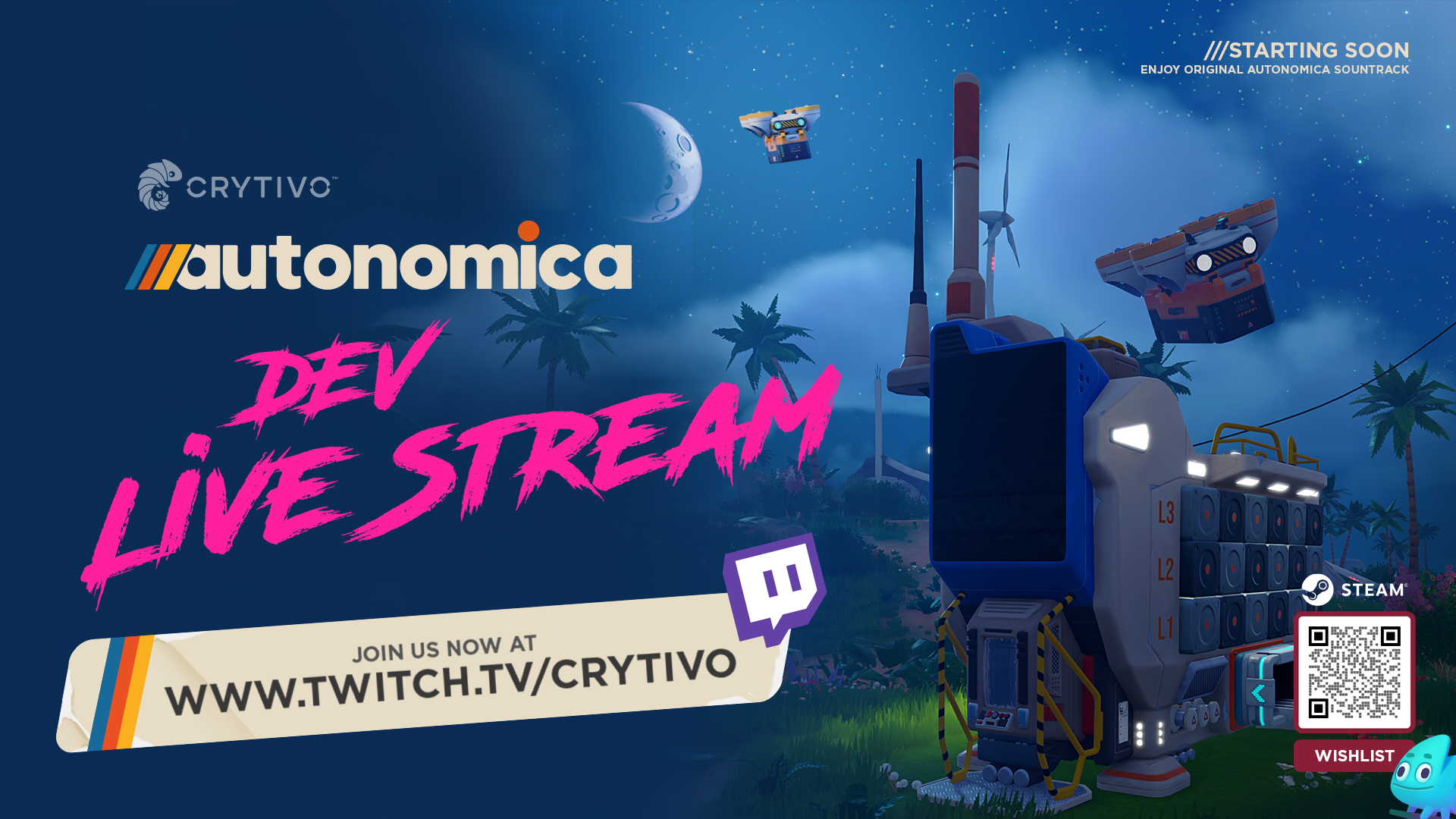 Autonomica is an open-world survival automation game driven by time travel. Explore a fractured island, build automated farms and machinery, and travel into the future to extract rare technology and resources.