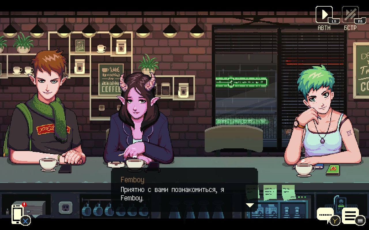 Coffee Talk is a coffee brewing and heart-to-heart talking simulator about listening to fantasy-inspired modern peoples’ problems, and helping them by serving up a warm drink or two.