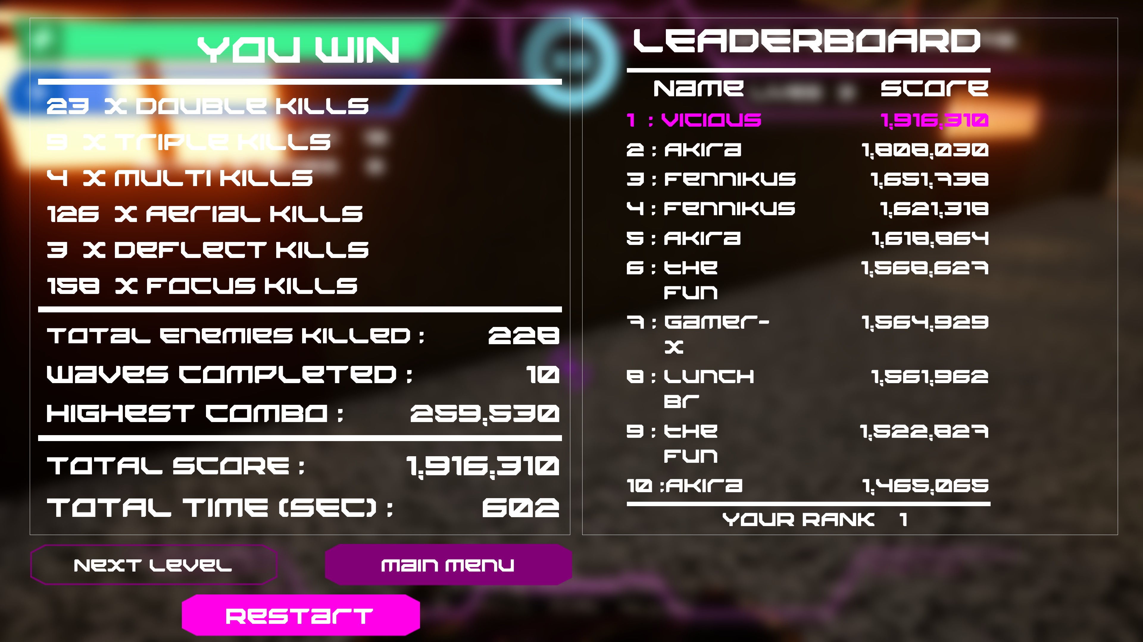 Fight through the battles like a ninja god in a first-person, cyberpunk-style and melee-heavy arcade arena world.