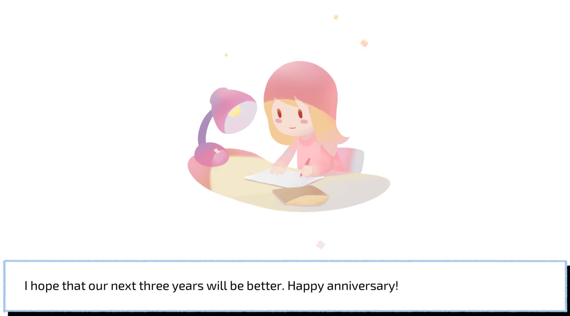 "What is love?" We try to answer that with this game. The game encourages people to have a warm, soft, and understanding heart.