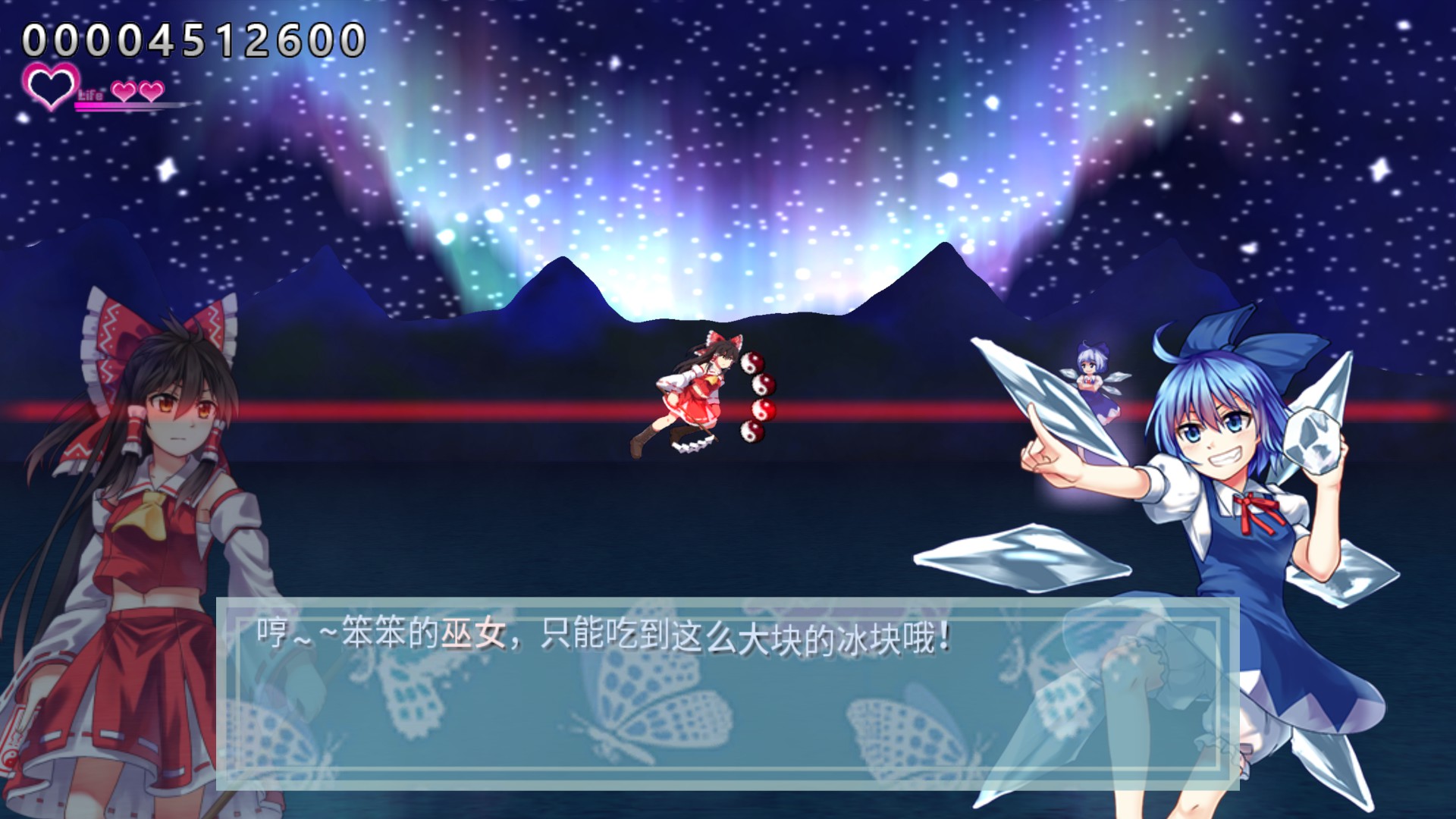 "Touhou Dreaming Butterfly" is a fan game for Touhou Project developed by Strrationalism. The game is intended for game players who enjoy the horizontal STG and to promote the contrasting gaming mode for others who are accustomed to the vertical STG gaming of the original Touhou Project.