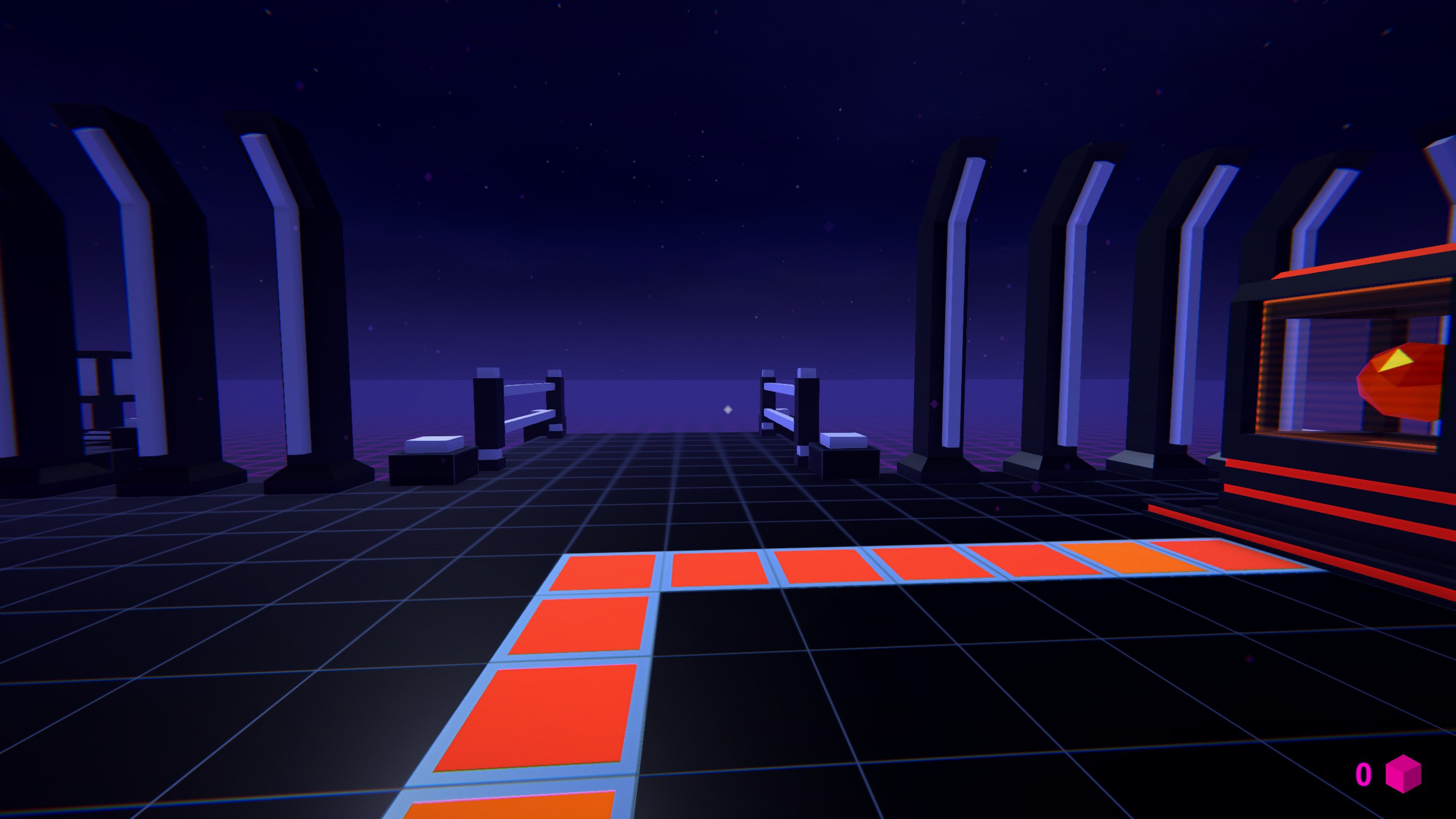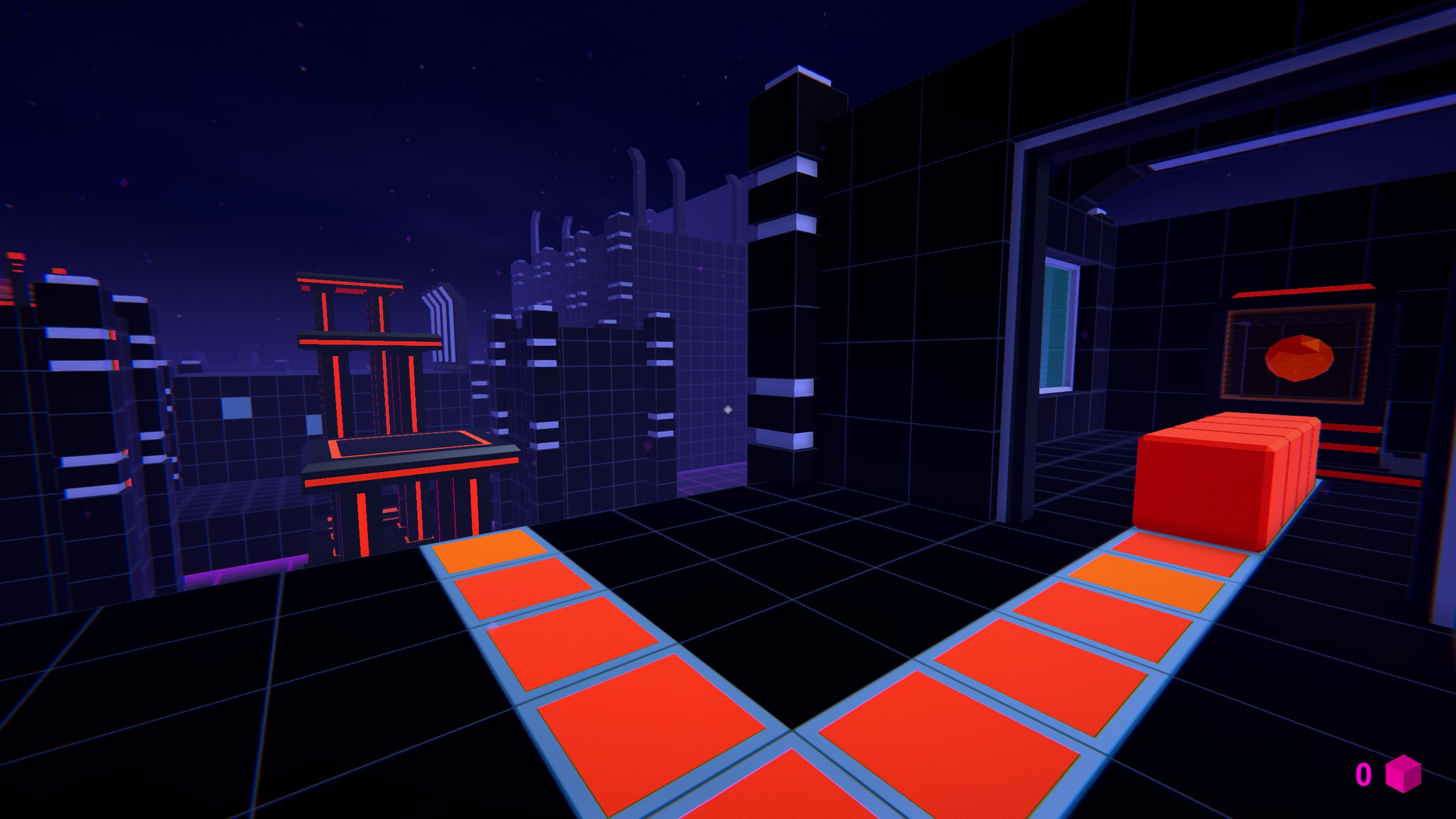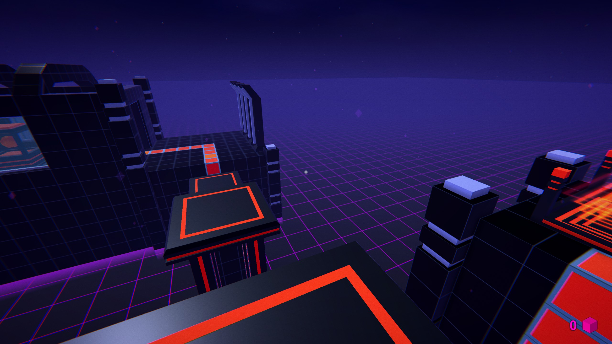 First Person Puzzle-Platformer imbued with atmosphere of synthwave and 80s.