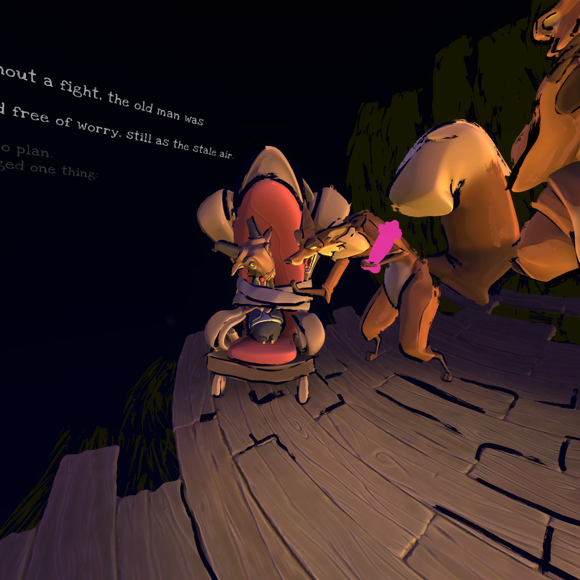 The Art Theft by Jay Doherty is an interactive VR narrative that injects 3D drawings created by the user into the unfolding narrative of a reimagined “Mad Libs” experience. Go down a rabbit hole with Butch the Bear, Wesley the Wolf, and Mr.