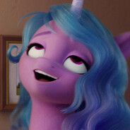 Izzy is a lilac unicorn with navy blue hooves. She has a wavy, cerulean blue mane and tail with an indigo ombre. Some promotional images show purple on her mane. She also has magenta eyes, violet eyebrows, and a long powder blue horn with white swirls.