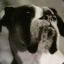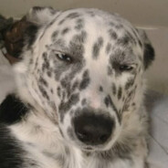 The dog smells.