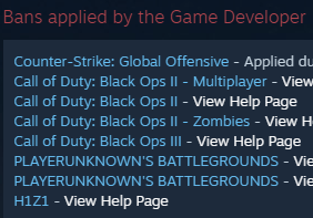 Multiple game bans on record | Info
