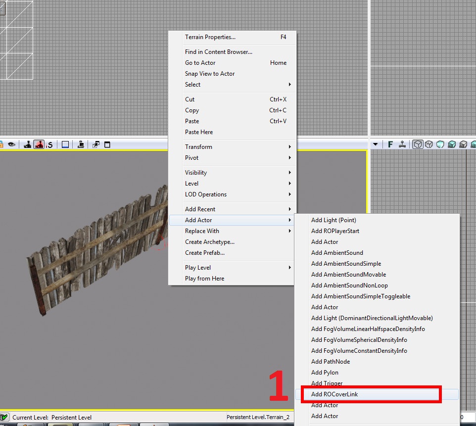 I will be using a fence to show how to place down cover. So right click near the fence and select (1) Add ROCoverLink