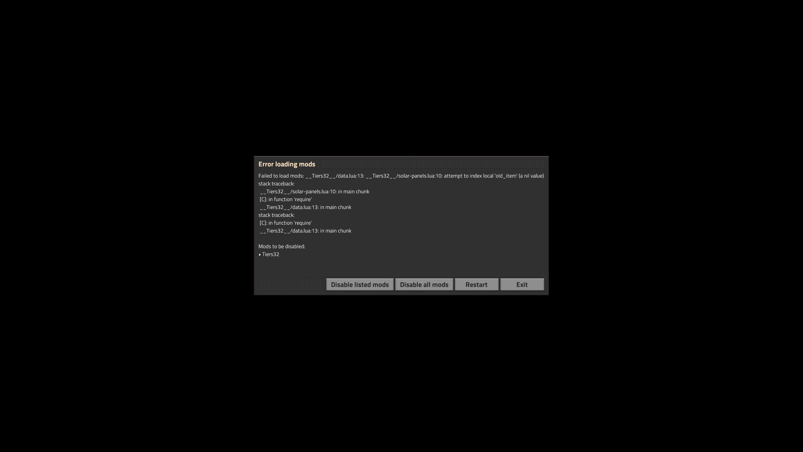 https://mods.factorio.com/mod/Tiers32/discussion/5c8b8c051c51c0000d54e318