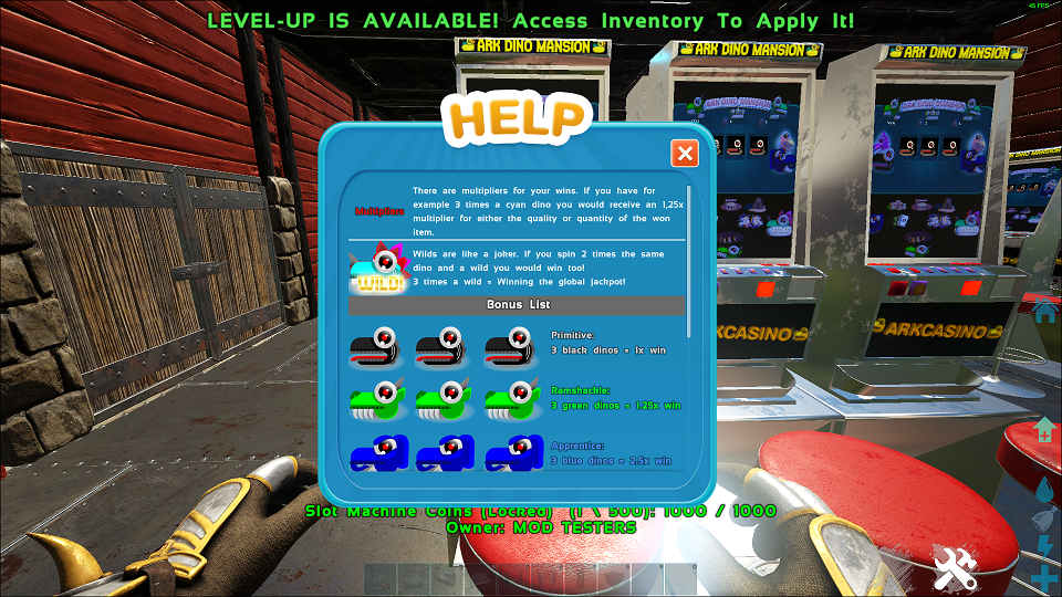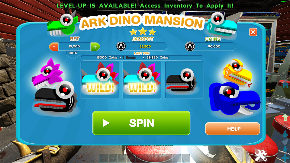 After you have enough coins, you can try your luck at the "ARK Dino Mansion". It's a slot machine with animation on spins.