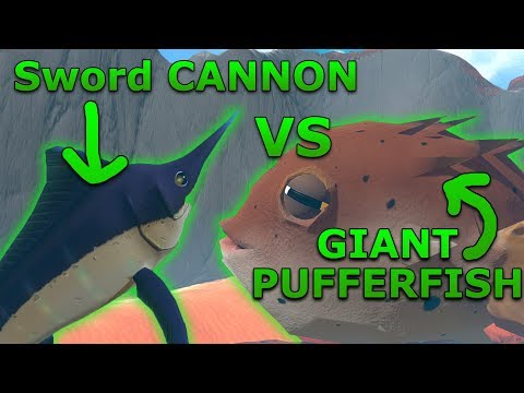 GIANT PUFFER FISH VS SWORD FISH CANNON