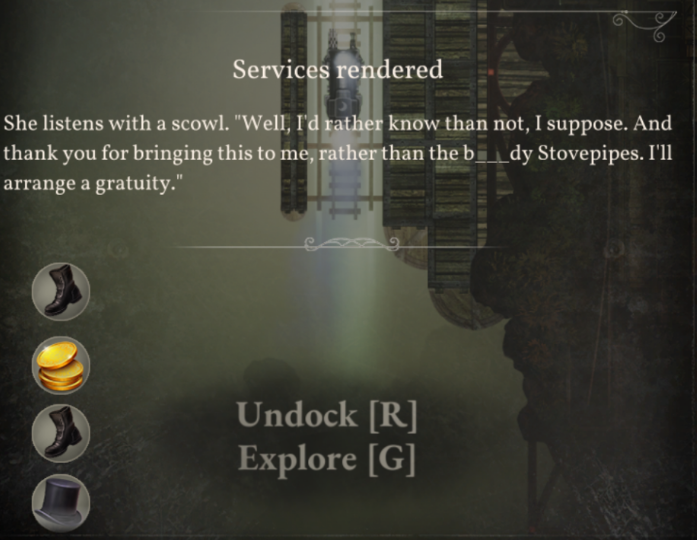 Please also be aware that while our fan-run wiki[sunlessskies.gamepedia.com] is a wonderful source of information, it has existed since we launched in Early Access. Fans have been updating it ever since, but it does mean that you will occasionally come across inaccurate information. It's an excellent resource, but please use it with a pinch of salt rather than treating it as word of law.