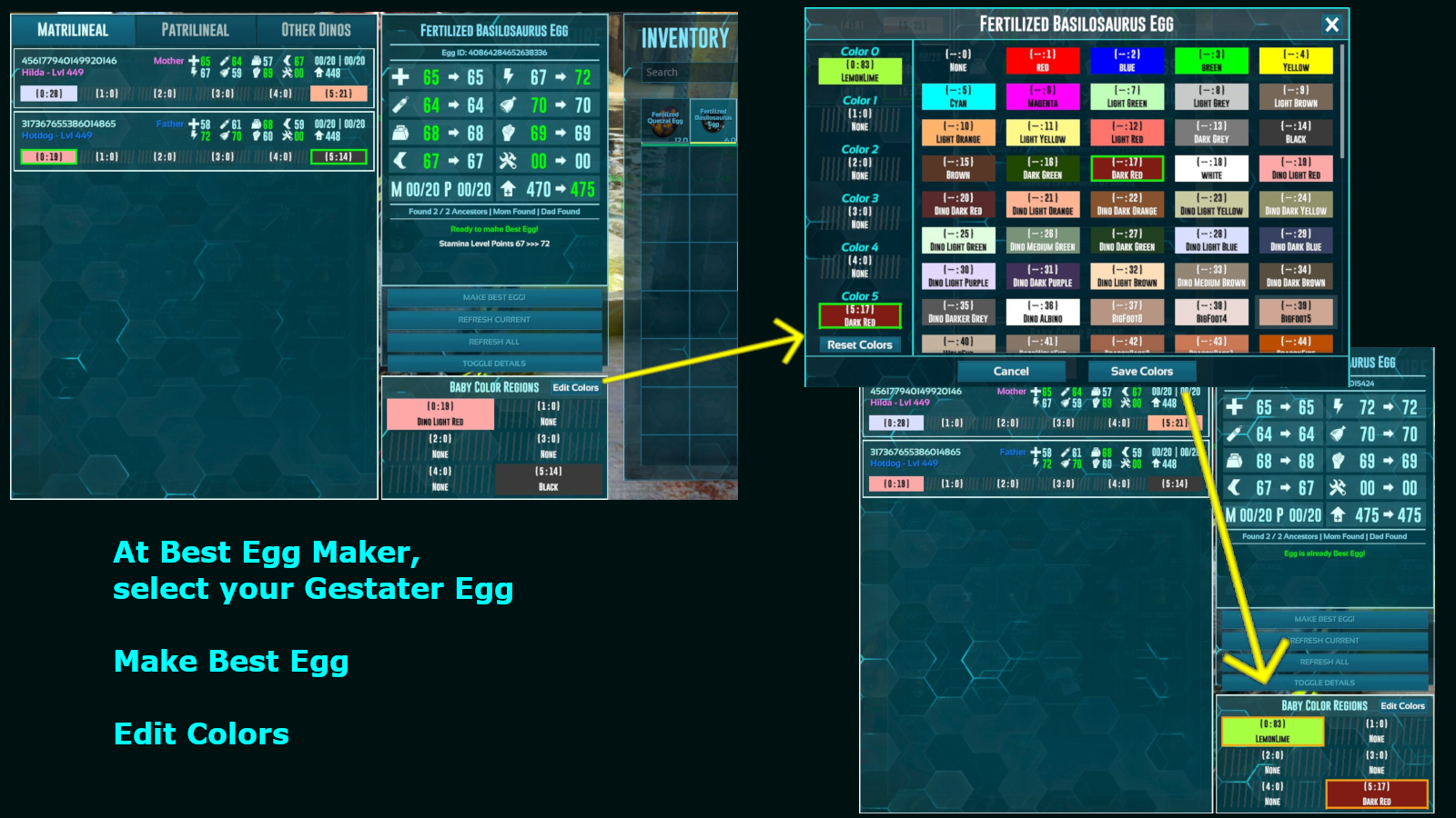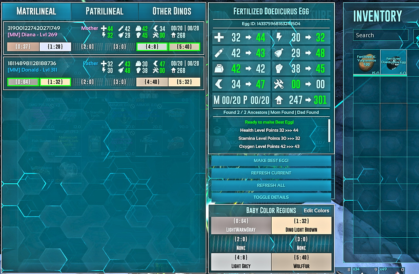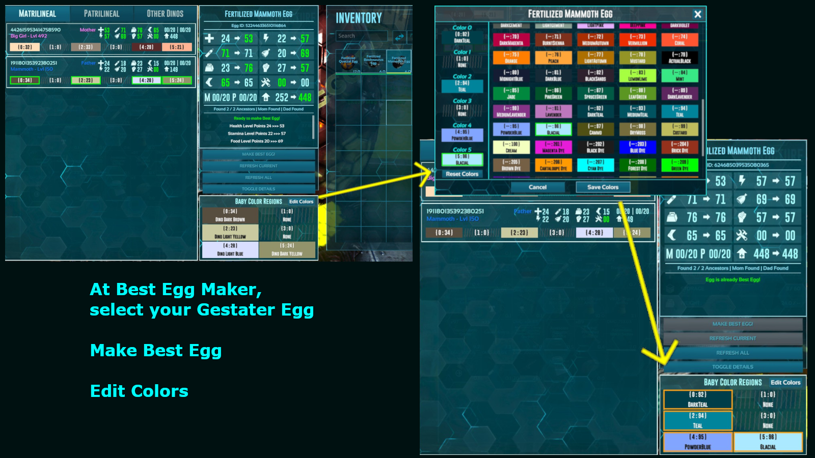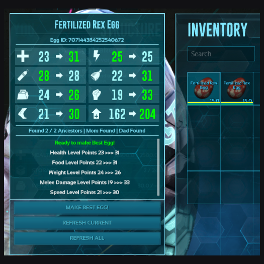 You have to breed dinos to upgrade them. Can't upgrade created eggs. Max egg level is 600 for most except tek, might be higher around 734 max for certain ones.