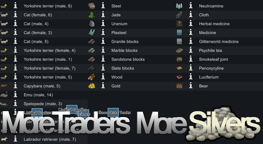 - The Animal Orbital Traders will not buy the animals you have with this mod as the owner created a custom event for the trader ships without adding the ability to sell animals.