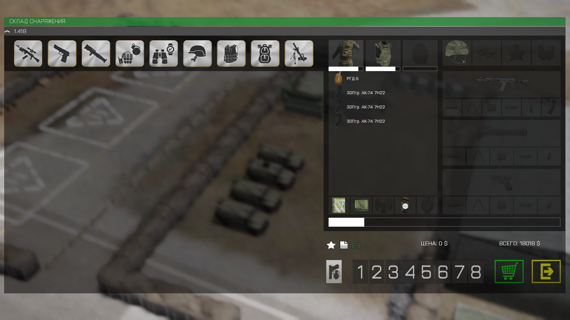 После выбора снаряжения Вам необходимо нажать кнопку "Купить" 🛒.