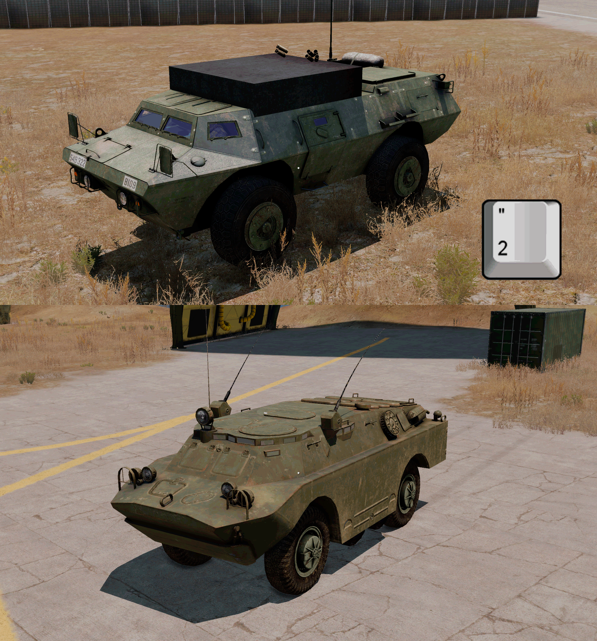 Также на Базе стоит КШМ (одна или две), которую следует доставить поближе к секторам, требующим захвата. Когда КШМ находится на базе, игрок может менять её камуфляж нажатием клавиш 1, 2 или 3, находясь на месте водителя, при этом двигатель должен быть выключен:
