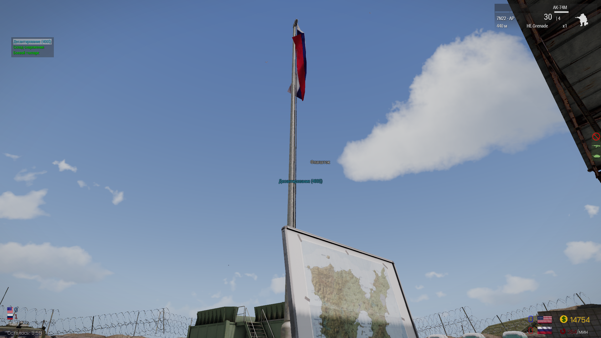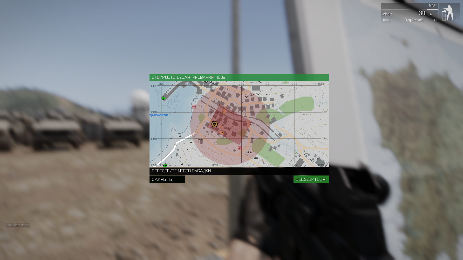 Стоимость десантирования - 400$. Десантирование невозможно в случаях, когда у игрока в снаряжении присутствует рюкзак, либо ручной гранатомёт.