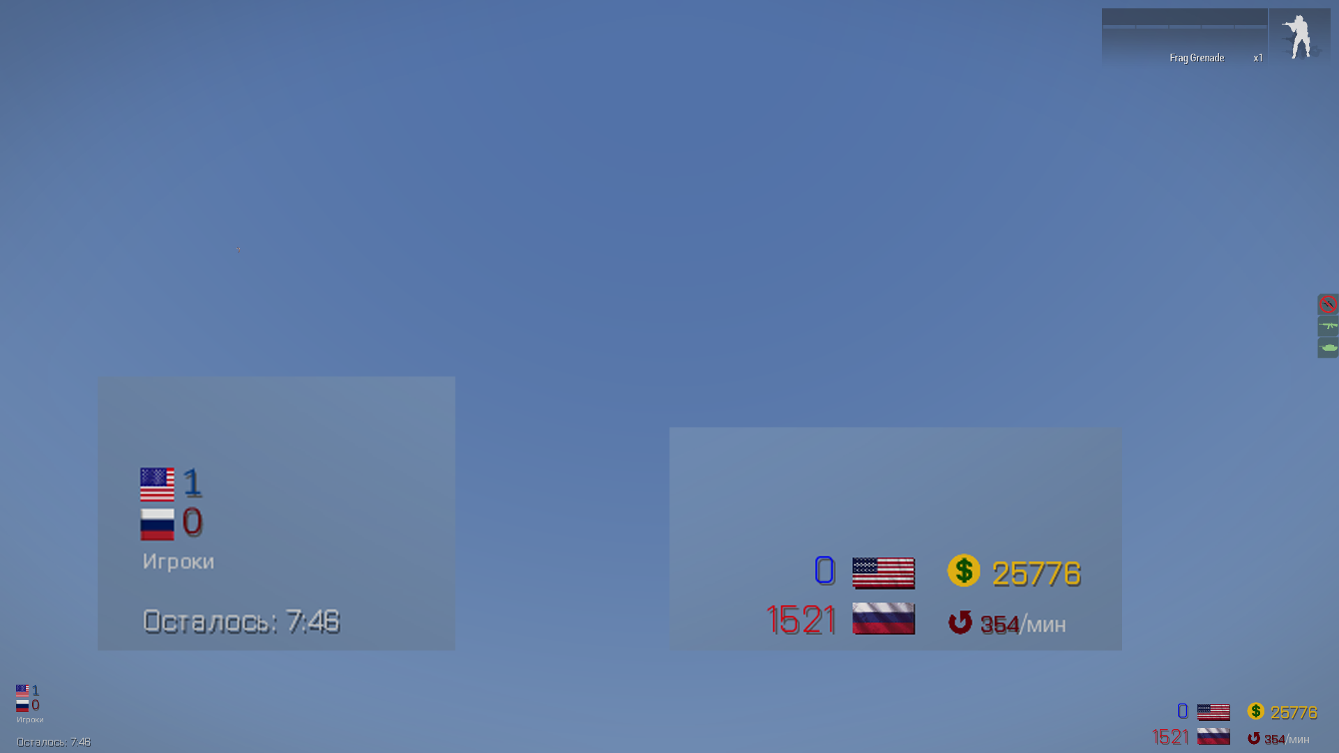 Слева от суммы показывается количество очков у каждой команды. Побеждает команда, набравшая наибольшее количество очков. В нижней части экрана отображается информация об убийствах и уничтожении техники. В левом нижнем углу отображается время, оставшееся до конца текущего матча, а также количество игроков каждой команды.