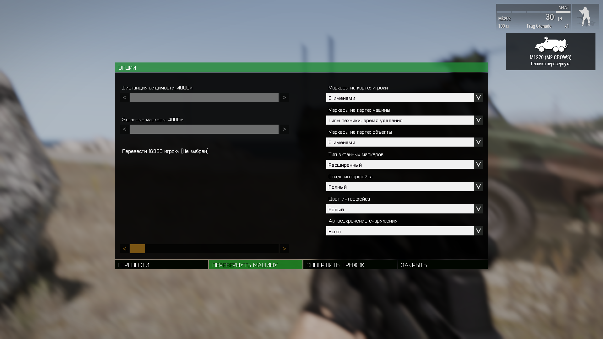 "Перевернуть машину", позволяет поставить на колёса перевернутую технику: