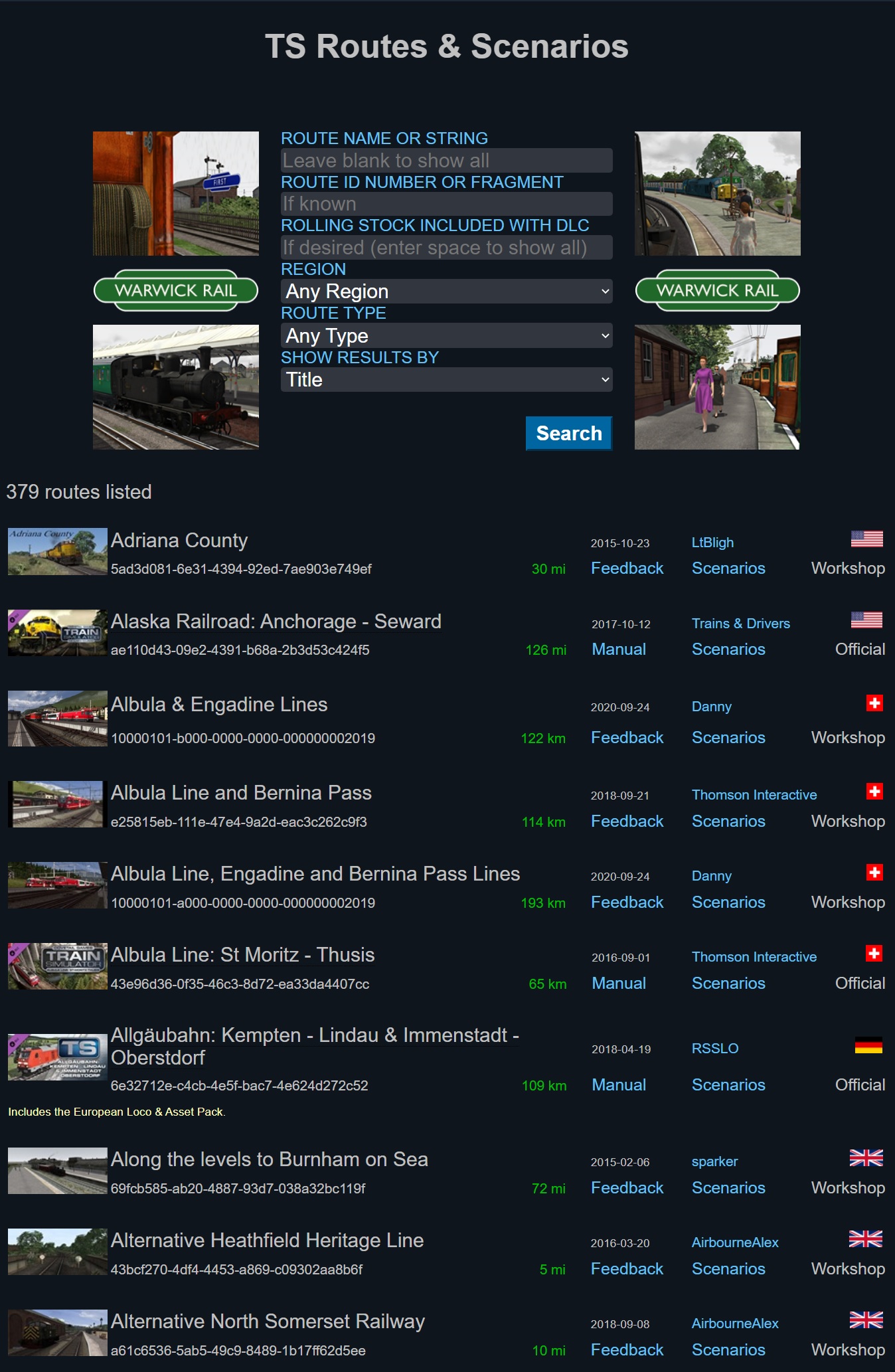 Better still, there is also a comprehensive directory of all routes - both official and workshop at the following link. It also has all the route manuals.