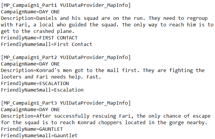 In SRGame.int, there are tons of references to a co-op campaign called "Exodus," where you would play as Grey Fox before Delta arrived in Dubai. There are mentions of leaderboards, level names, and a basic story outline to follow!