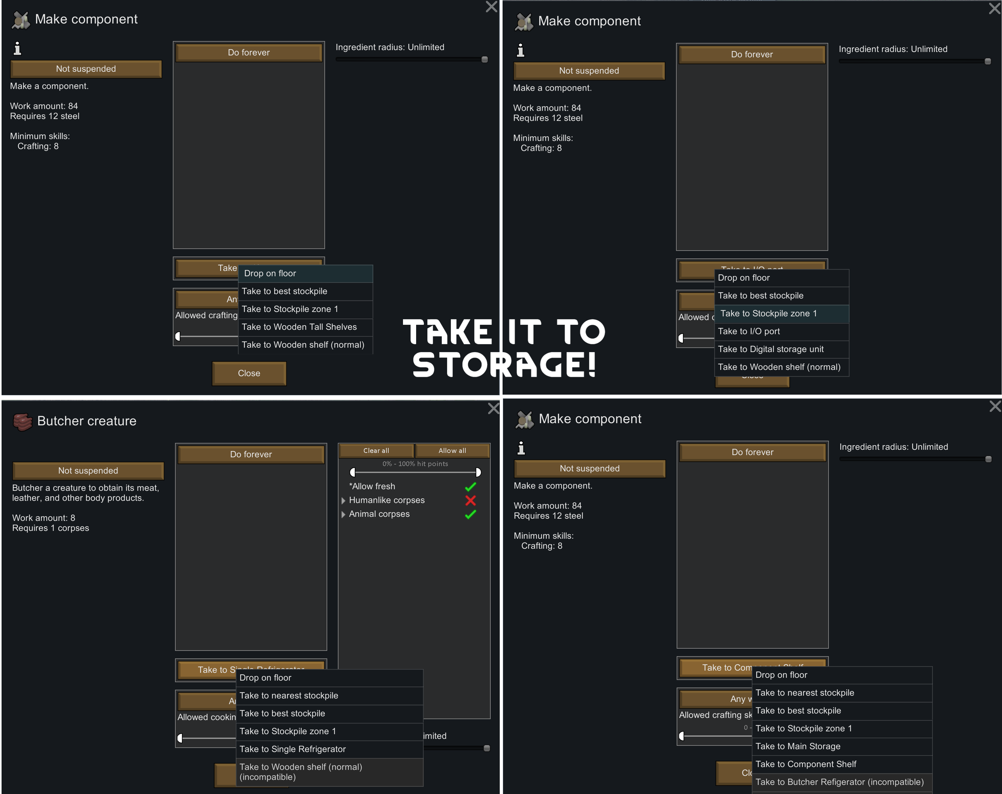 "Take from" option is a must have if your pawns just keep doing stupid stuff like not prioritising meat just because they are not forbiden from using rice