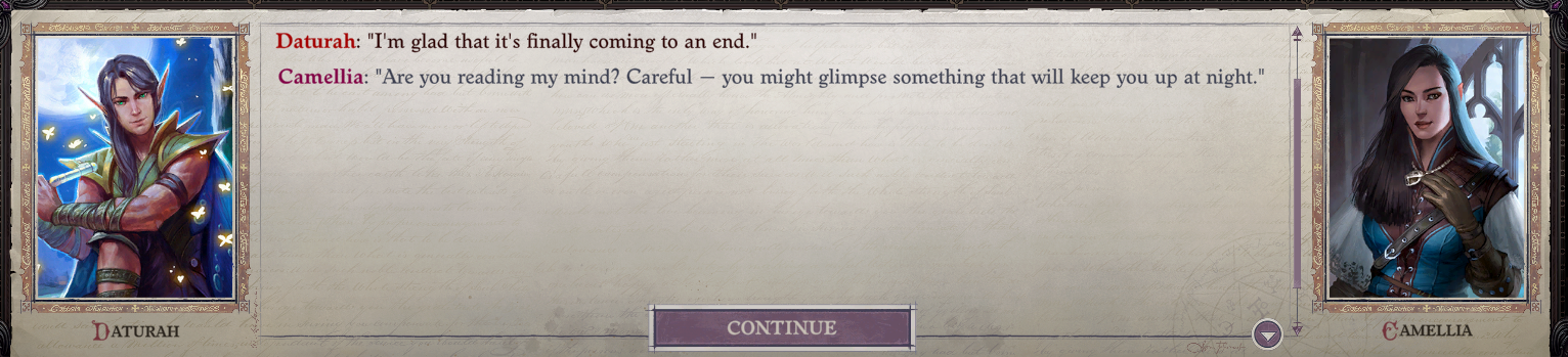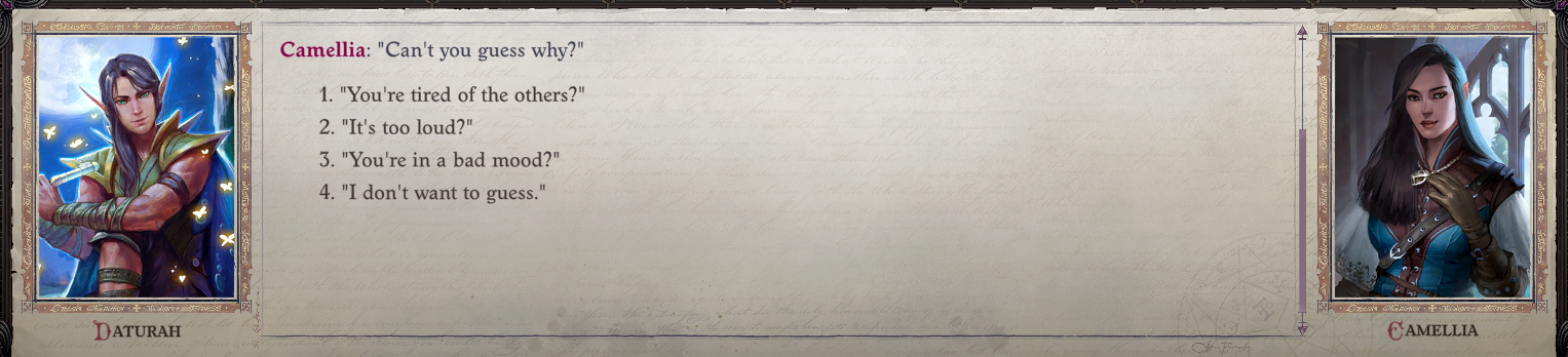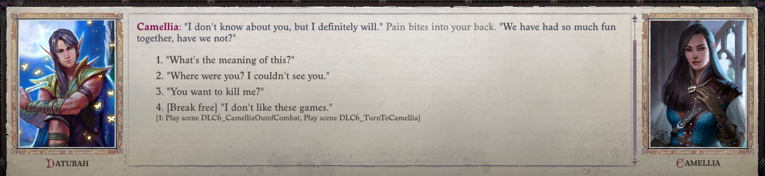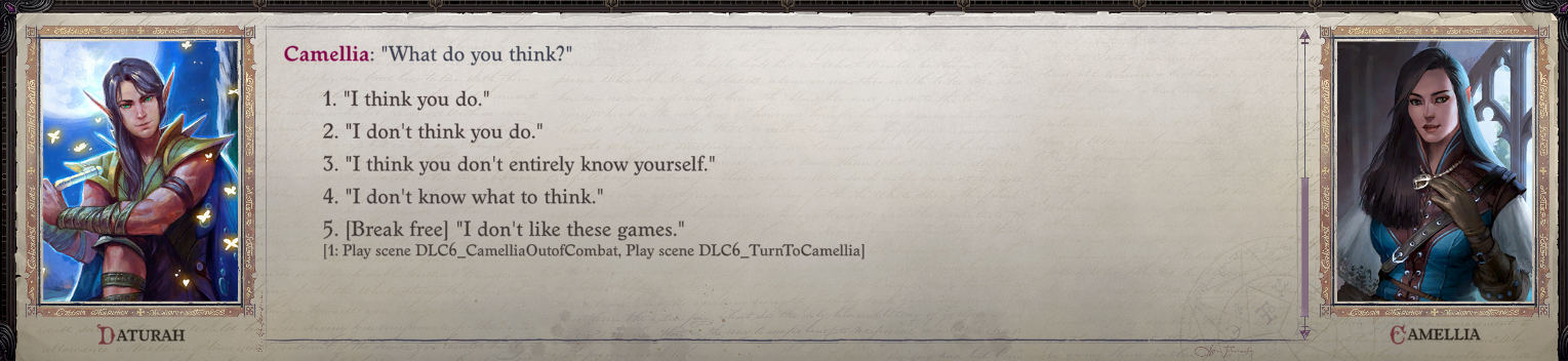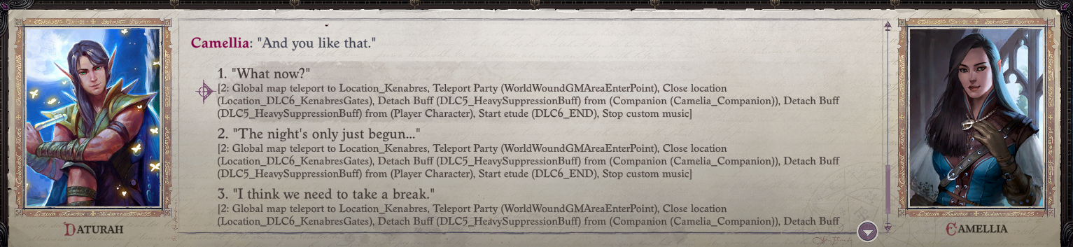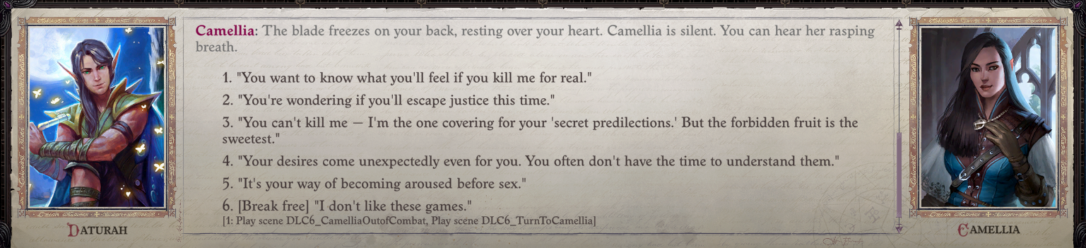 I do agree with you though Miskatonic, that Cammelia is easily the best written romance partner ive ever seen in an rpg.