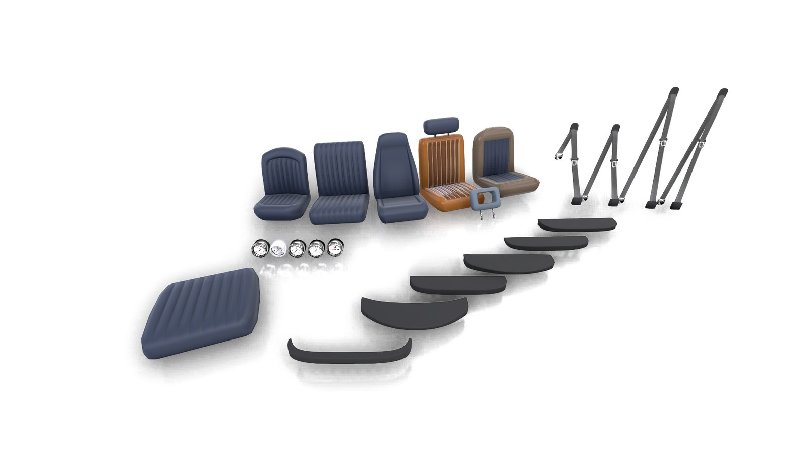 Here are some interior parts, some seats, seatbelts, gauges...