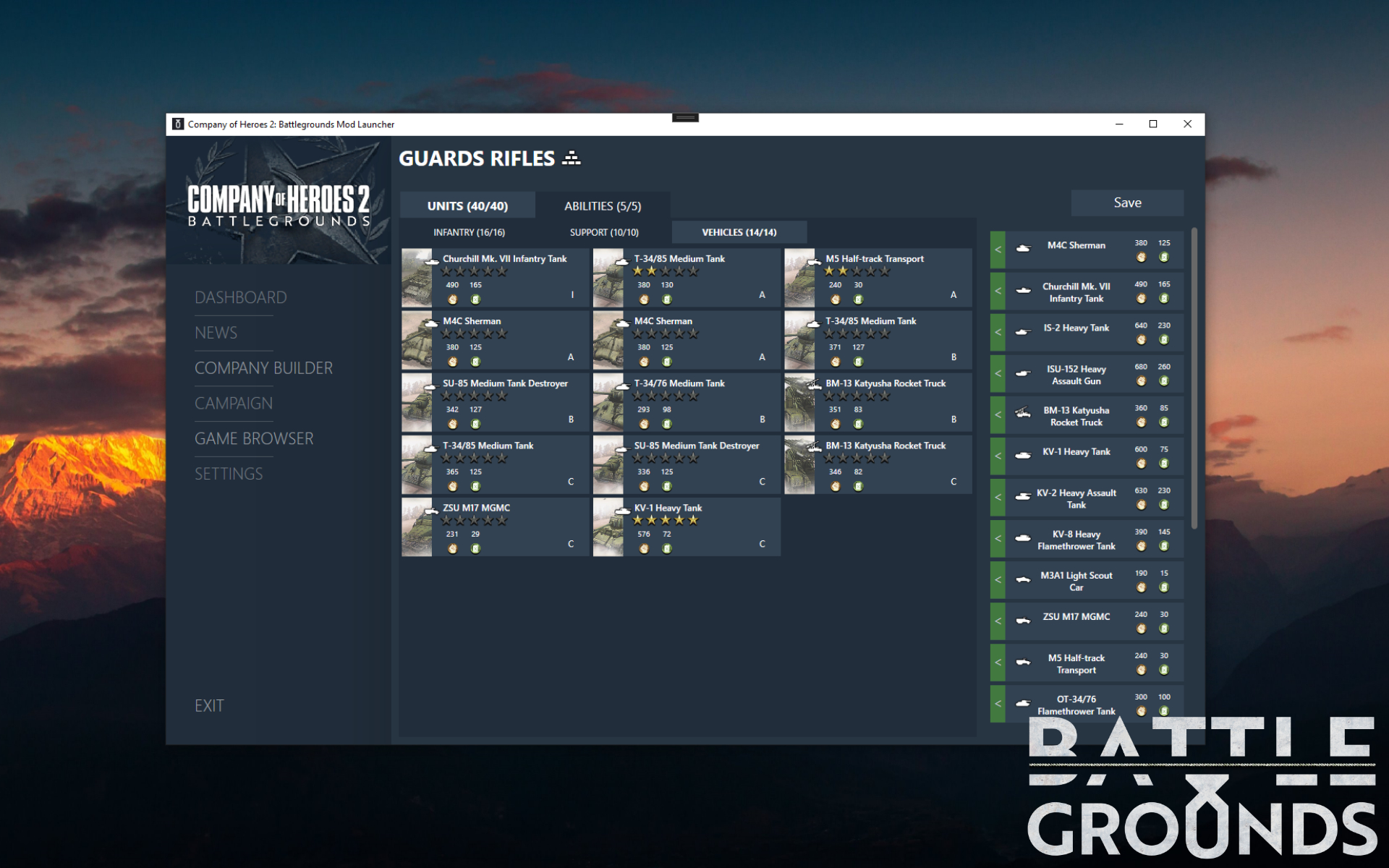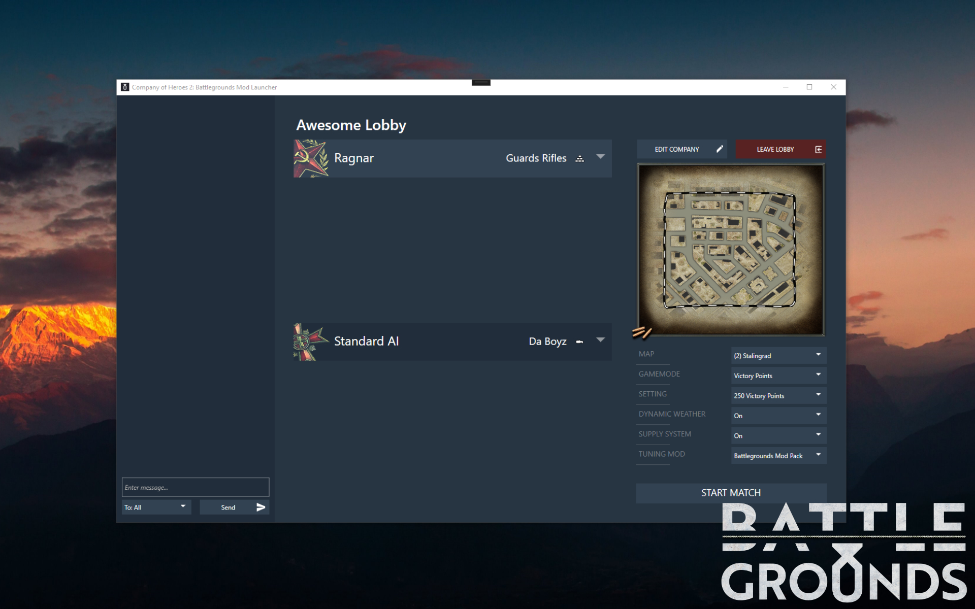 "Make sure your Tunning Pack is set to CoH2: Battlegrounds and your Win Condition to Battlegrounds - Gamemode"