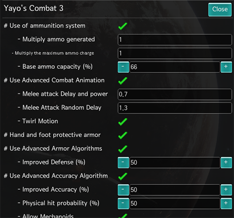 https://github.com/rimworldYayo/Yayo-s-Combat/wiki/