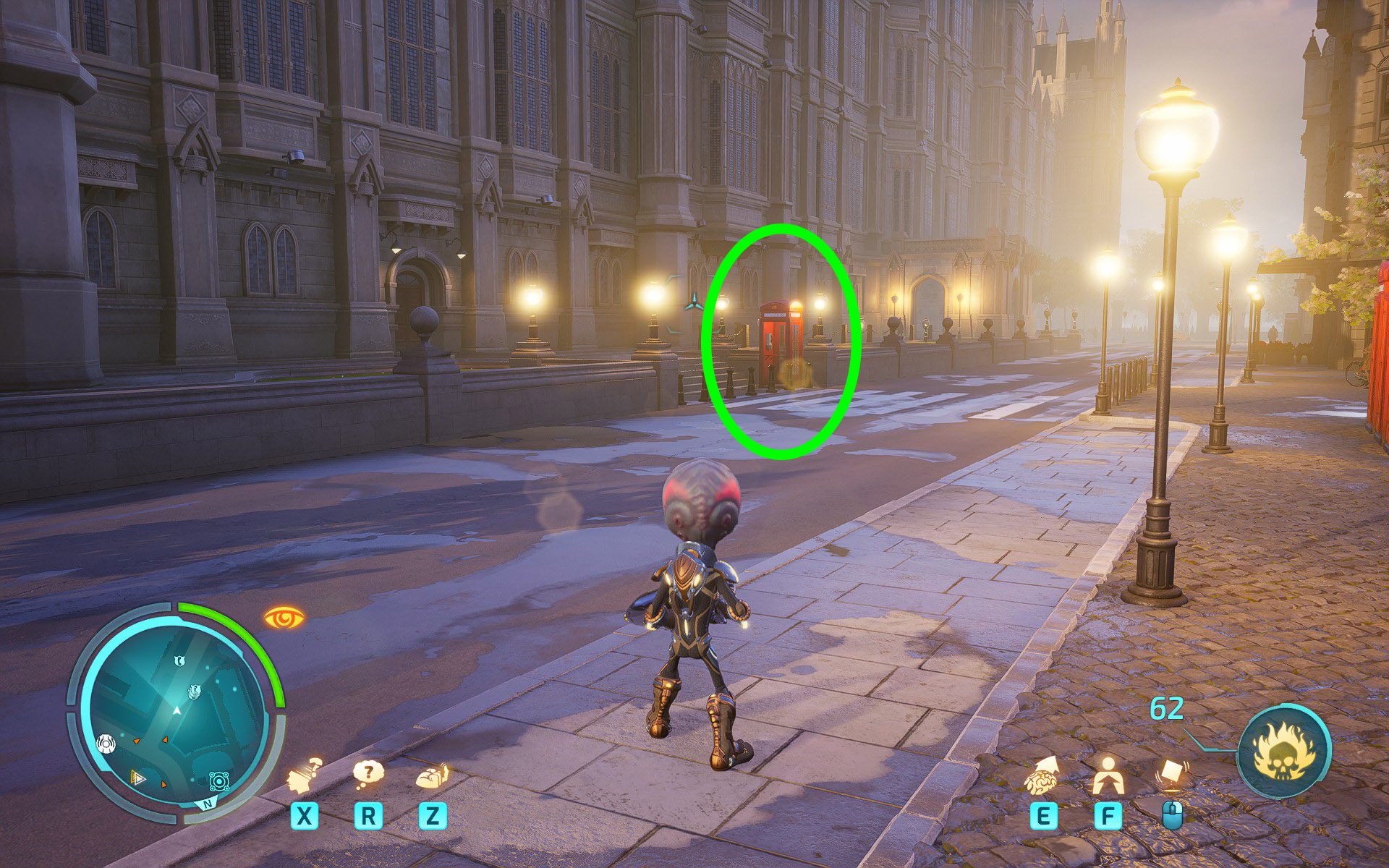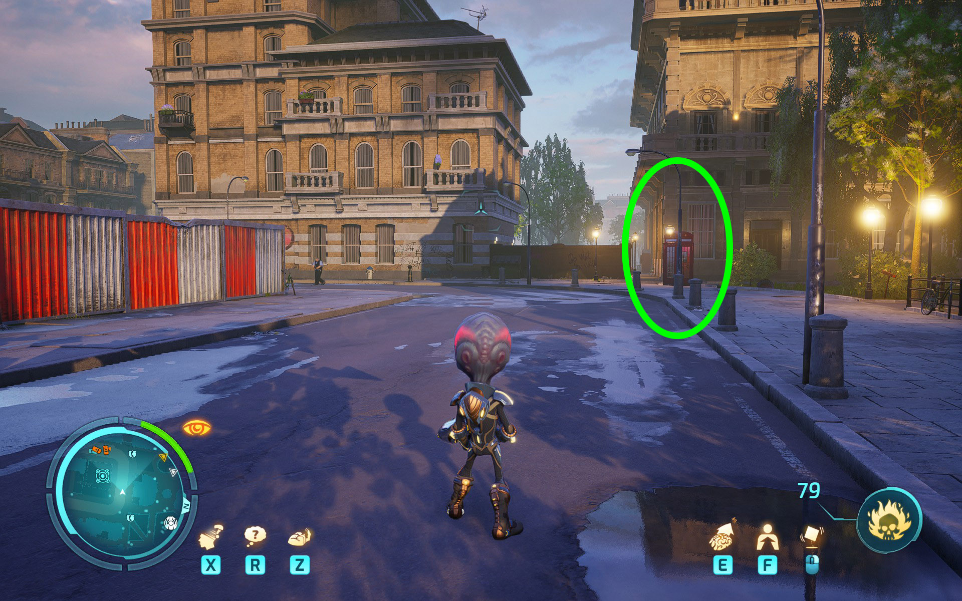 Cross the bridge, go through the buildings, and locate the red phone booth with the first caller. Use Forget on him to get the optional objective.