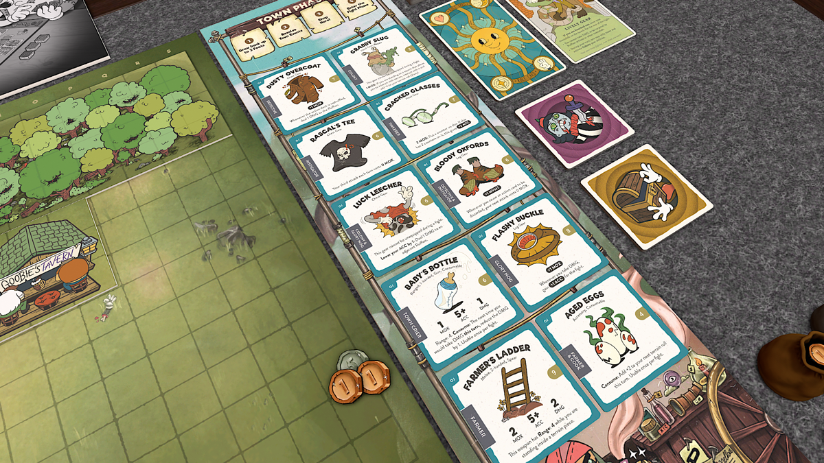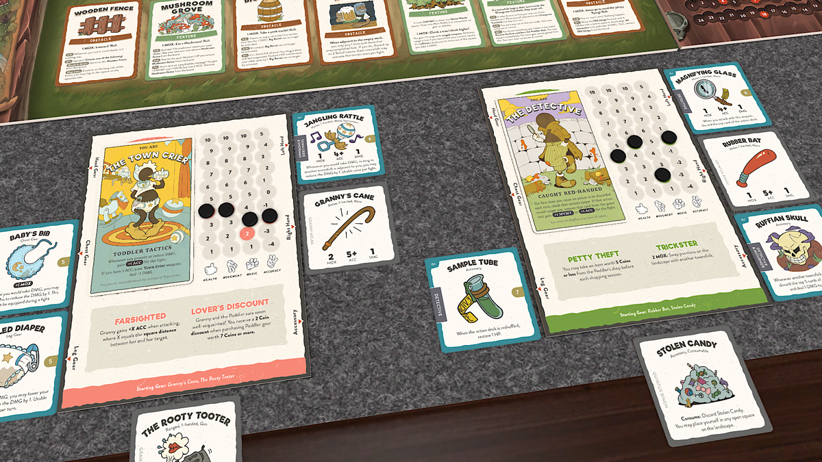 In the Odd Jobs expansion, you’ll help the Peddler restock her cart and fill the abandoned roles around town, ranging from cook to clown. Scavenge the Hoselands’ nooks and crannies for anything that could be of use; you’ll need to get creative if you want to survive! While you won't be unlocking gear or roles in this demo, we've included a collection of gear and Role cards to give you a taste of what's to come.
