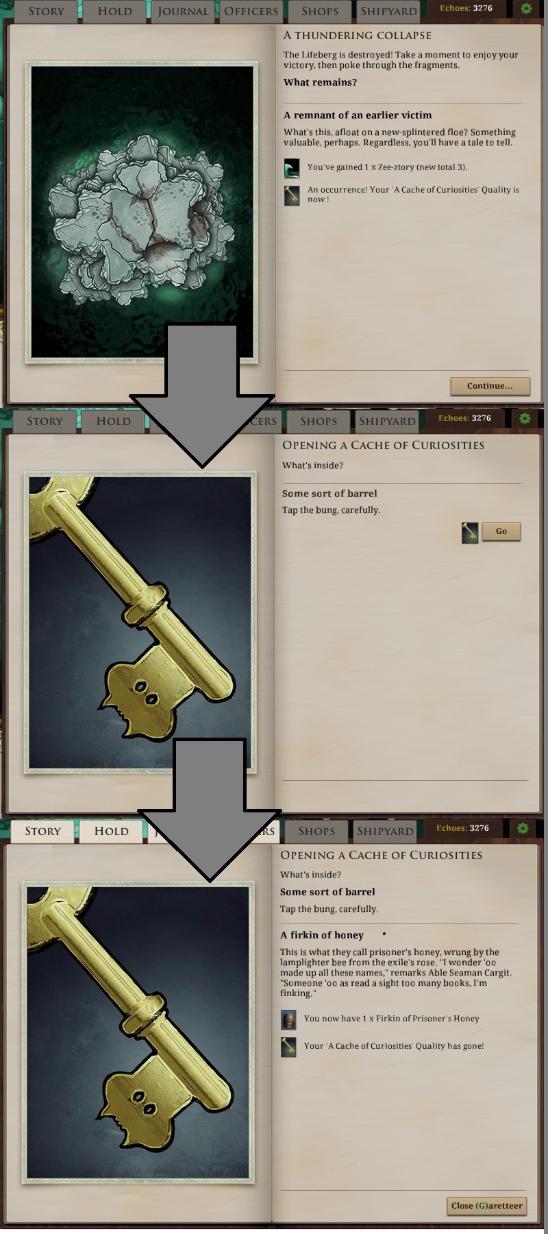 "8/4/2014 Bug? 1of2 - Smooth Transition for Cache of Curiosities occurrence. How it ought to be. Also lol@my MSPaint qualtiy combining skill"