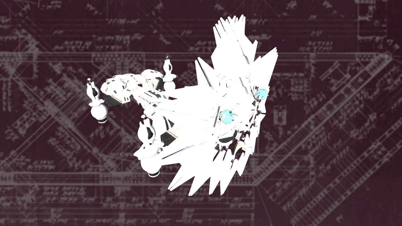 These Deathmasks are notorious for striking at a distance, and flanking ships from the sides, using their mighty shields to protect the vital hull of the ship. Even so, the design flaw has been looked upon by the engineers since our last skirmish against these things. Even after you get past the shield, jumping behind it, or shooting it off you still have a hailstorm of fire to get past. Even the engines that make it hover are guarded by turrets.