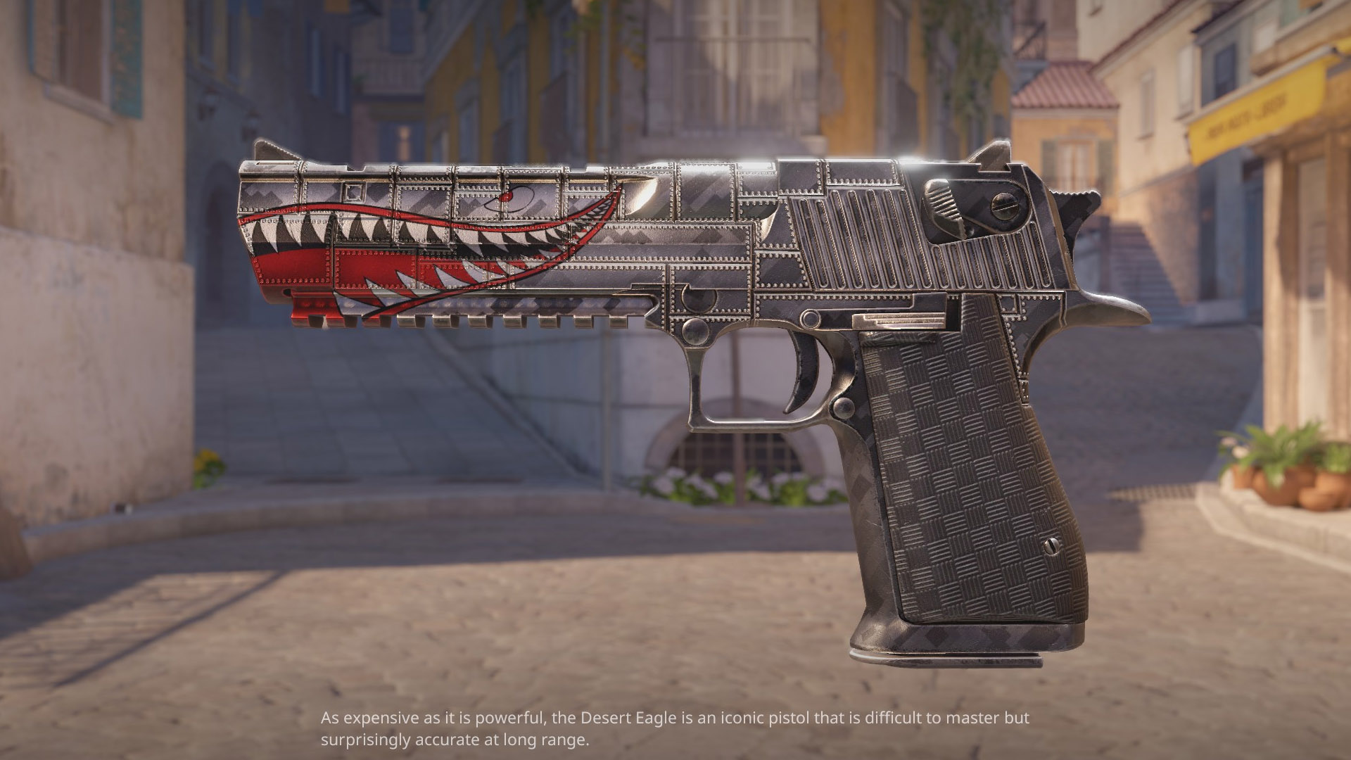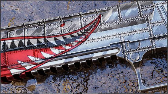 A skin inspired by WW2 fighter jets that would often have a smile painted on the nose, like the famas spitfire. But we wanted to make a metallic and more modern version!
