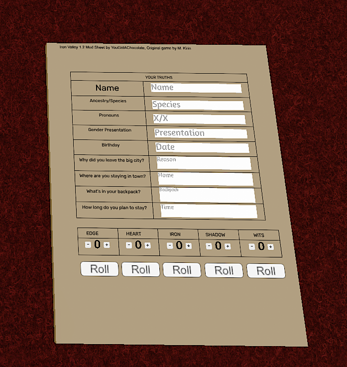 Another quick thing but for now I will not creating the villager/promise trackers until I become more experienced. I would suggest you keep a backup of them or a separate document elsewhere, as tabletop is fickle with how saving works anyway.
