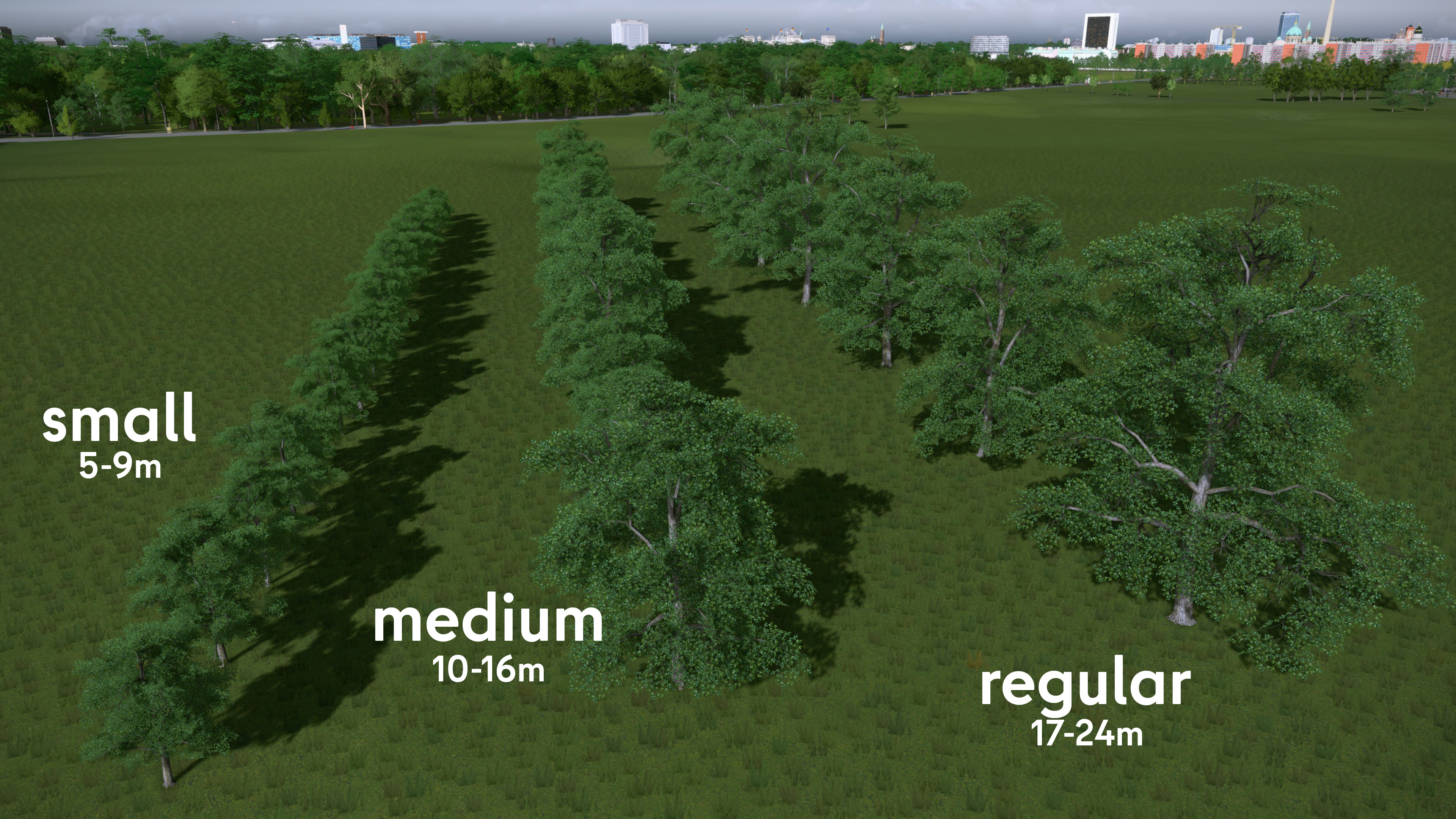 Here are three variations on MrMaison's glorious European White Elm, created with his blessing. These smaller versions make great street trees, and this set will allow me to better represent the Berlin "trees-from-data" in my upcoming Berlin 2025 map. The differences are as follows: