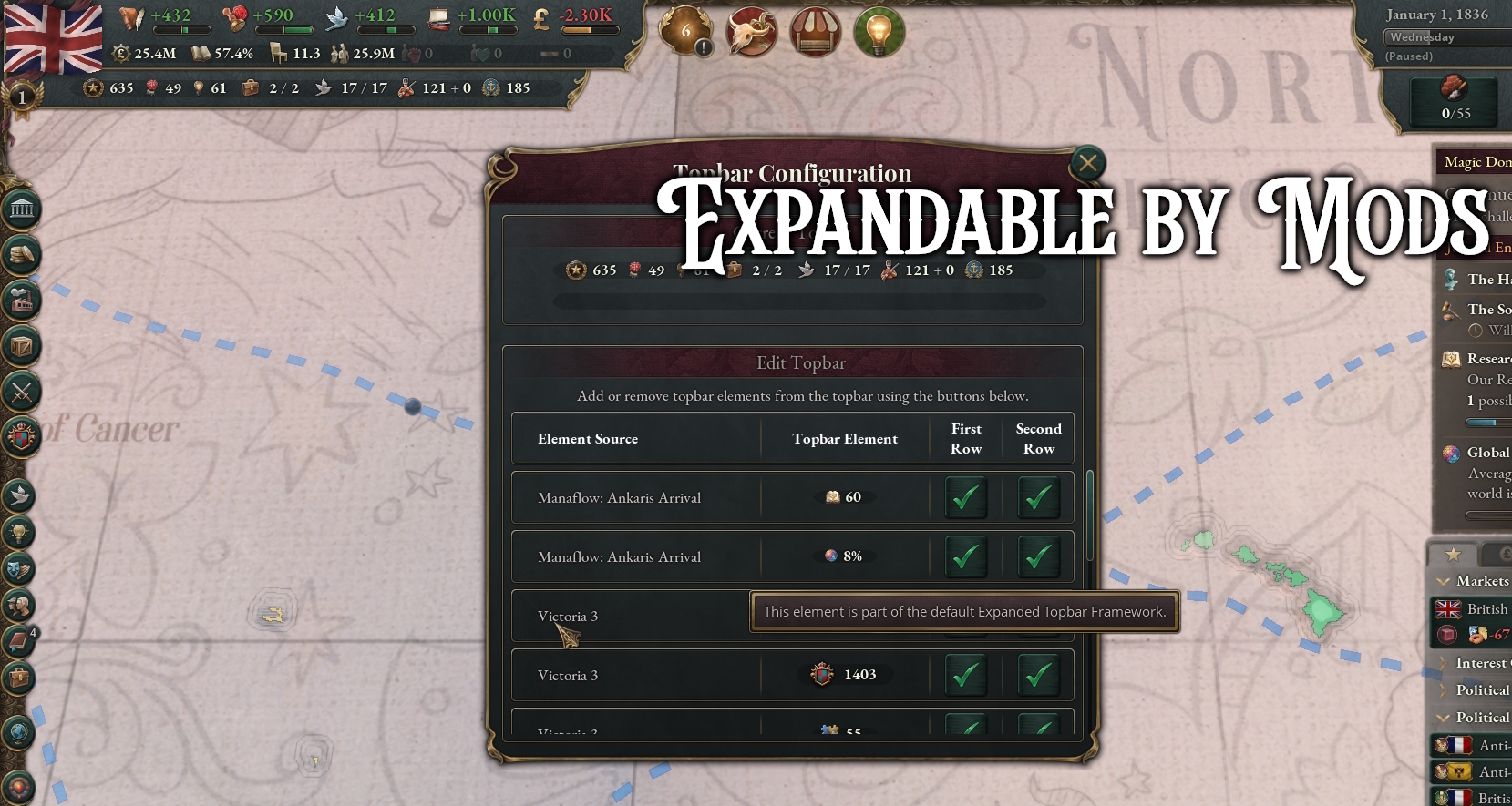Those should also be shown somewhere in the market panel.