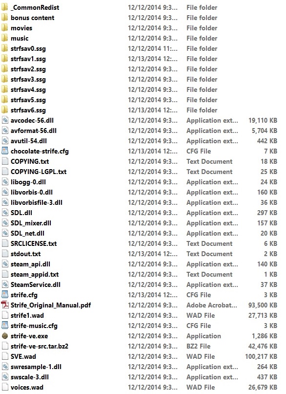 Open it and you'll be greeted with this. There are three .wad files here. Strife1.wad and Voices.wad are the original WAD files associated with Strife. While SVE.wad is for all of the enhancements. If you copy Strife1.wad and Voices.wad into your favorite source port like gzDoom or Chocolate Doom, it'll work just fine. Also in this folder is a .pdf of the original manual under the name Strife_Original_Manual.pdf