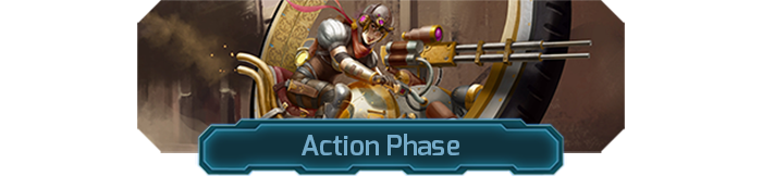 Both players play cards in realtime during the Action phase, which lasts about 20 seconds. A shrinking bar shows how much time is left. The bar is broken into two halves. This is important! Units played in the first half of the phase can attack this turn. Ones played after the split have to wait until next turn (though they can still block).