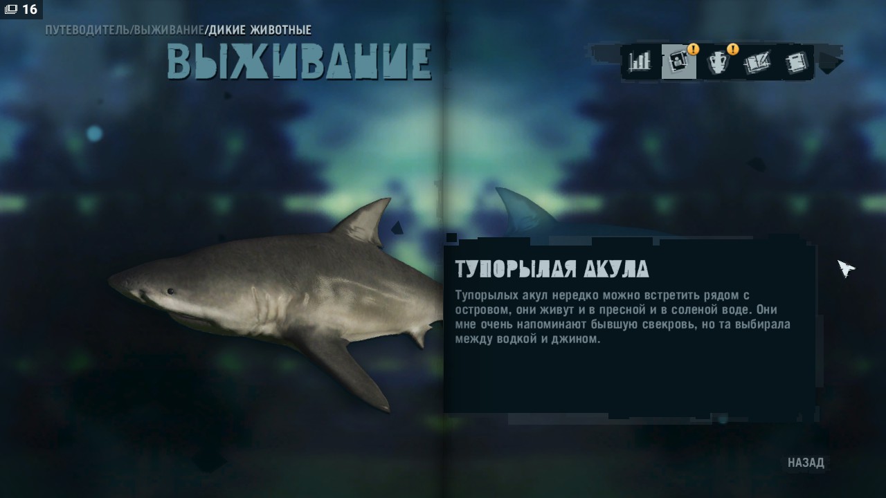 Но пожалуй самым интересным занятием на острове, является охота. Я уже говорил что на острове присутствует большая и разнообразная фауна. Такое разнообразие так и манит игрока окунуться в этот дикий мир. Найти гепарда и убить его гранатой, выслеживать стадо оленей используя снайперскую винтовку с глушителем, или сесть на лодку и пострелять в акул из пулемета, здесь выбор только за вами. И не обязательно убивать! Вы можете спрятаться в кустах и понаблюдать, как тигр грациозно охотится на пару тапиров. Игра дает вам возможность чуть ближе приблизиться к дикому миру. С убитого животного можно снять шкуру. Ее можно продать или пустить в крафт, что бы cделать себе улучшенные сумки, ремни, патронташи, и другие полезные вещи. В игре присутствует справочник, в котором описаны все виды животных, досье на некоторых людей, описание техники, и много другой информации о архипелаге. Информация в нем будет пополняться по мере прохождения игры.