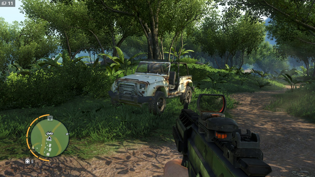 Far Cry 3 может предложить небольшой, но разнообразный арсенал оружия. Штурмовые винтовки, пистолеты, дробовики, снайперские винтовки, или лук. Оружия к тому-же можно немного модифицировать. Поставить более вместительный магазин, глушитель или даже покрасить.