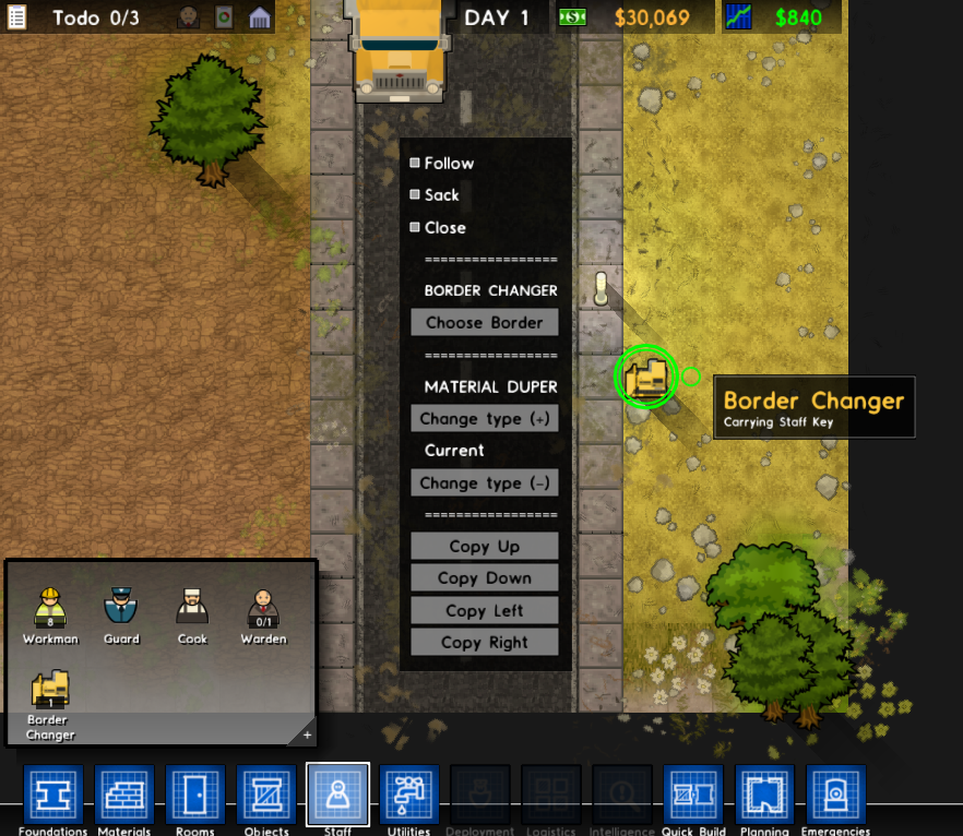 Edit savegame with Notepad++ and change OriginX value on top. If you make it 10 instead of 0 then the vertical 'cant build here' stroke gets moved 10 tiles to the right. -10 moves it to the left. Then you can remove the road and change the value back to 0 once done. OriginX also determines the spawn point of visitors/parole/teachers.